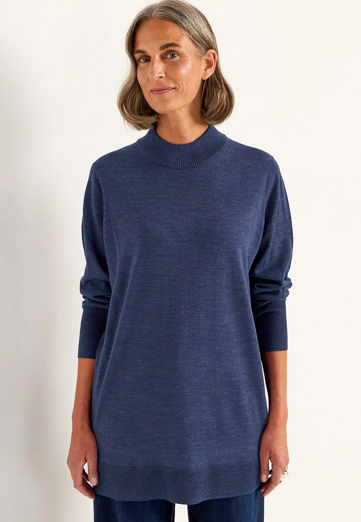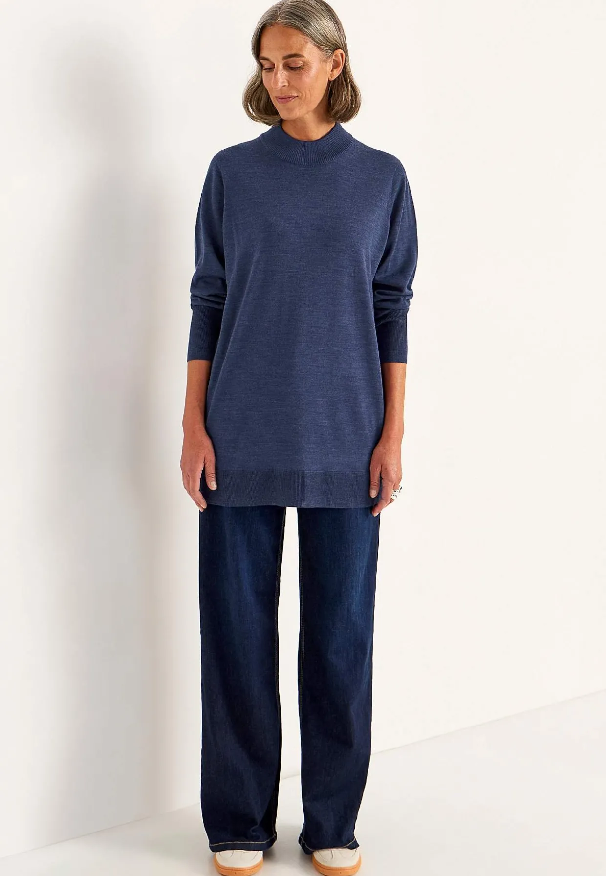 • Lange, brede ærmer med formstrikning.