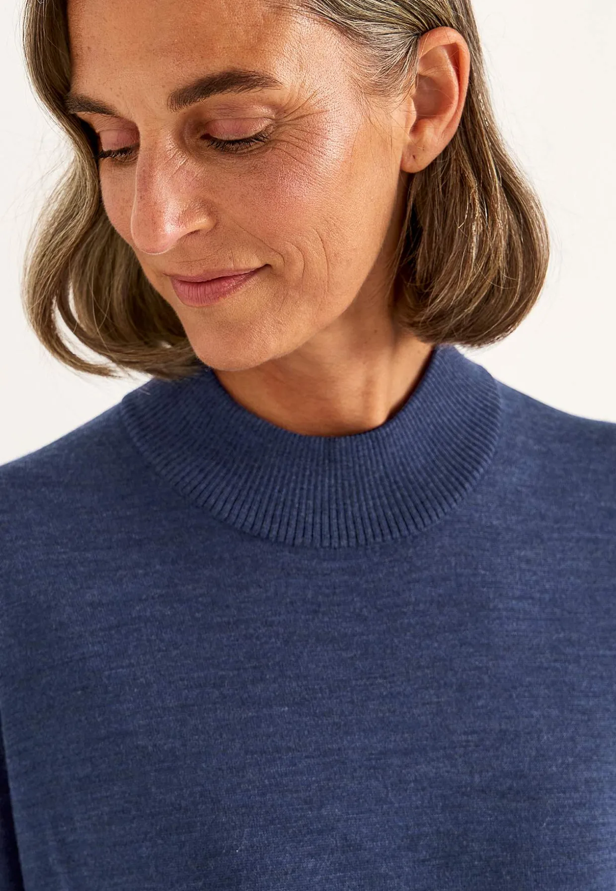 • Ribstrikket lav rullekrave.