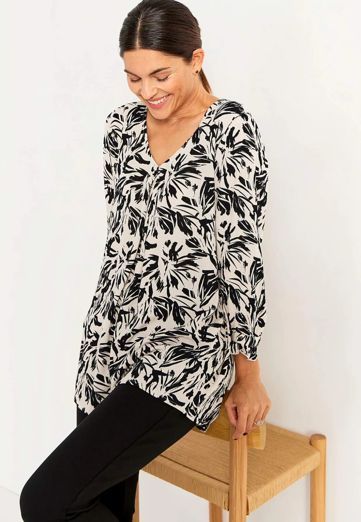 • 3/4 lange ærmer med tynd manchet med knap og romantisk flæsekant.