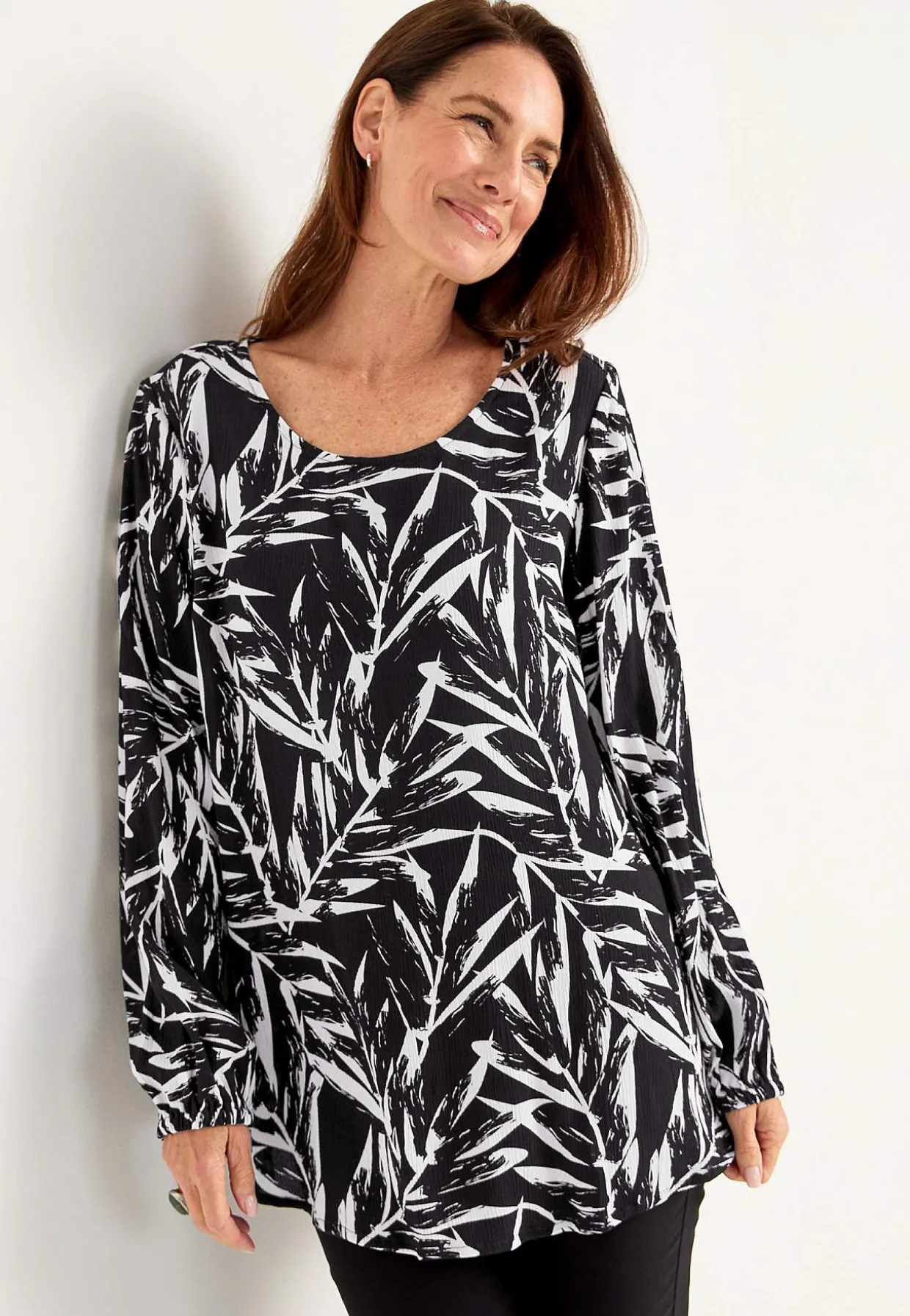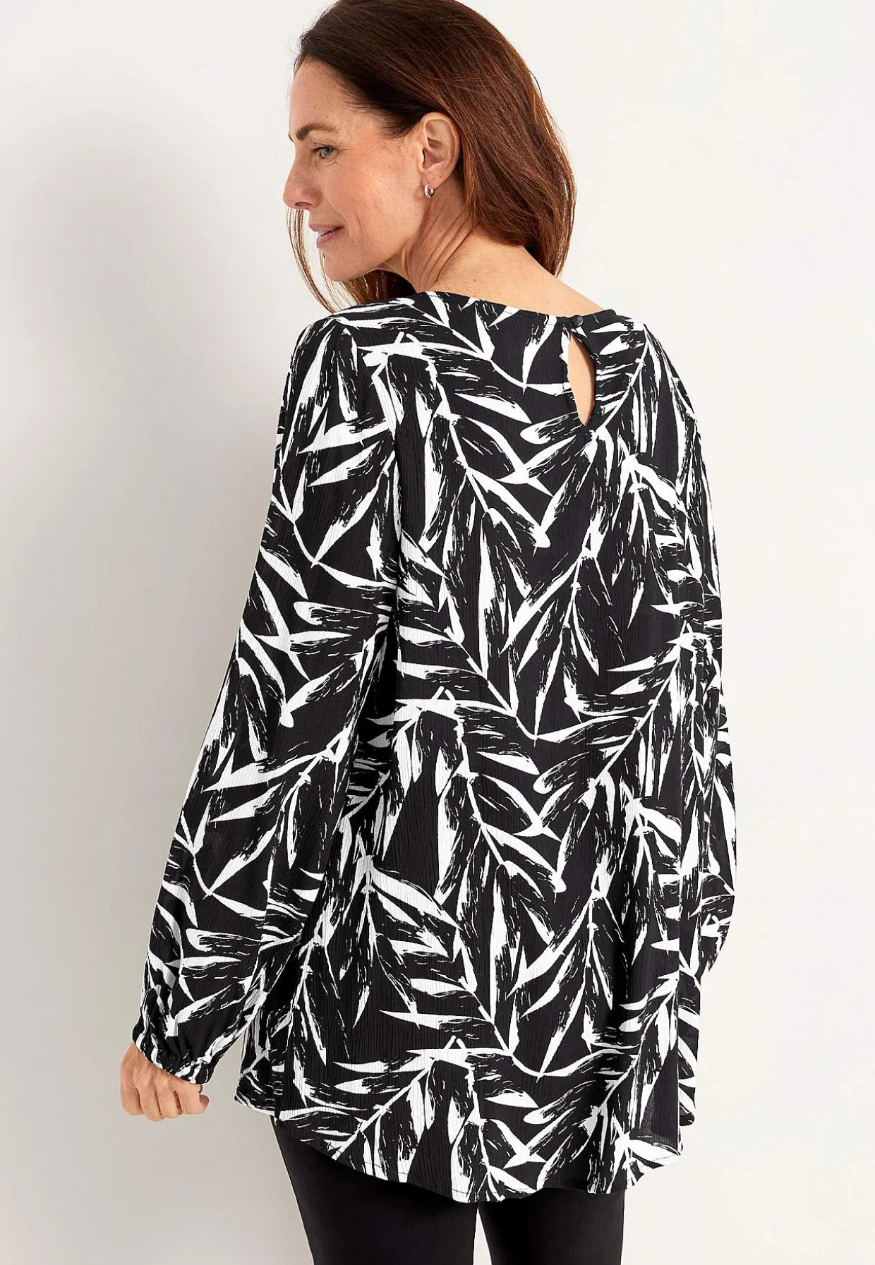 • Langt pufærmer med elastik ved manchetterne.