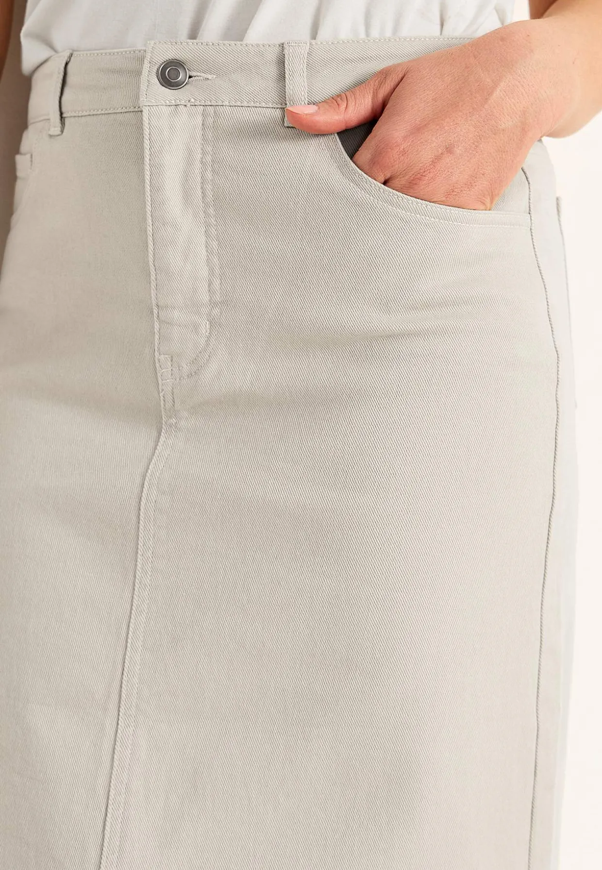 • 5-lommemodel med gylp med lynlås og knap.