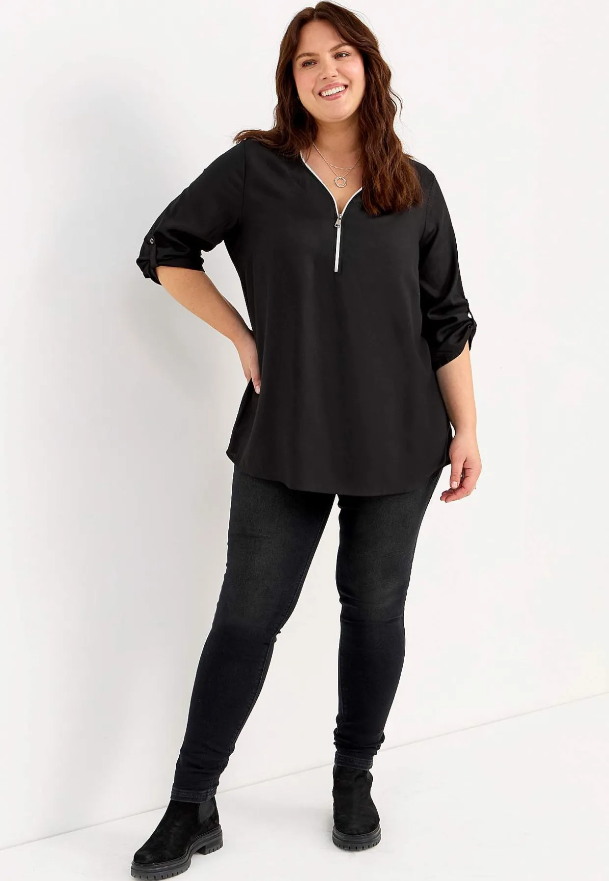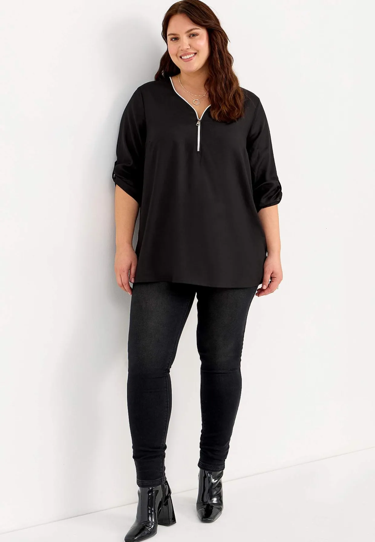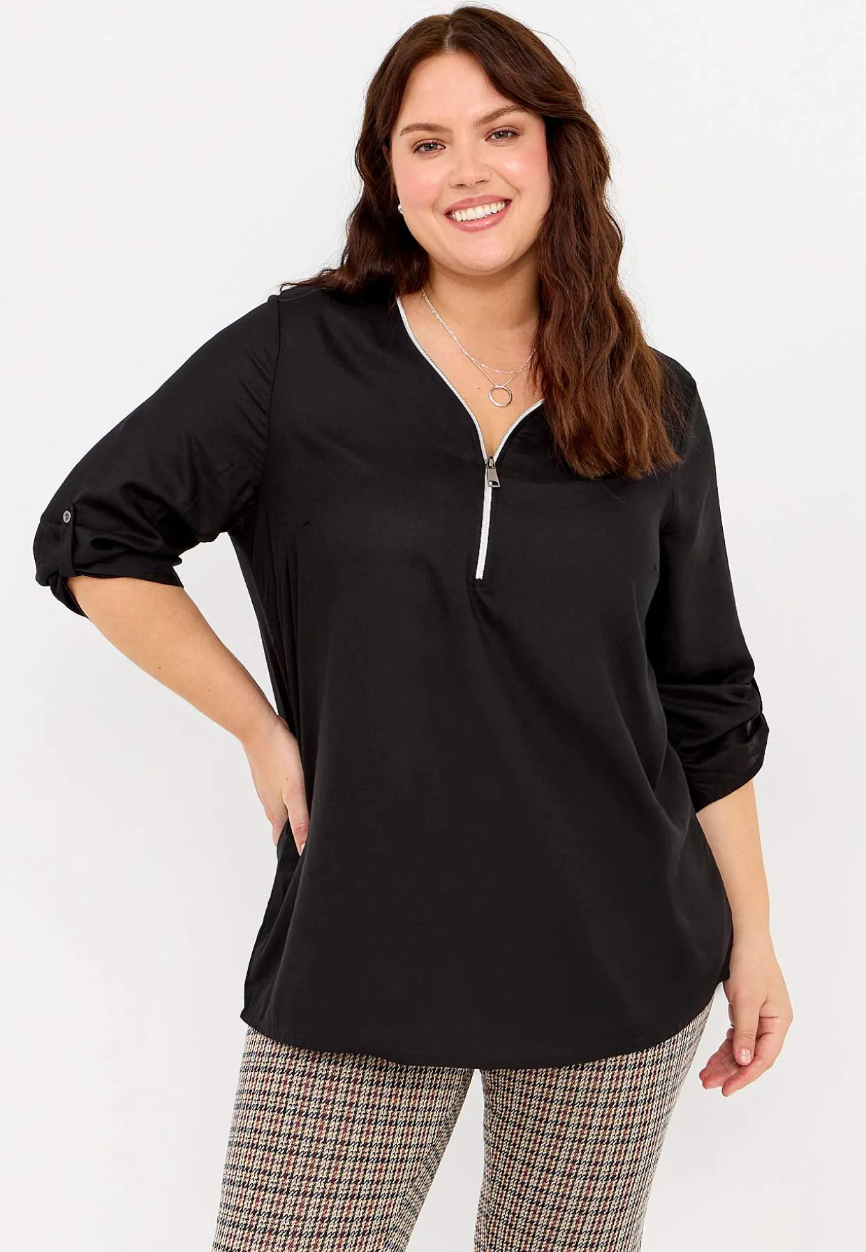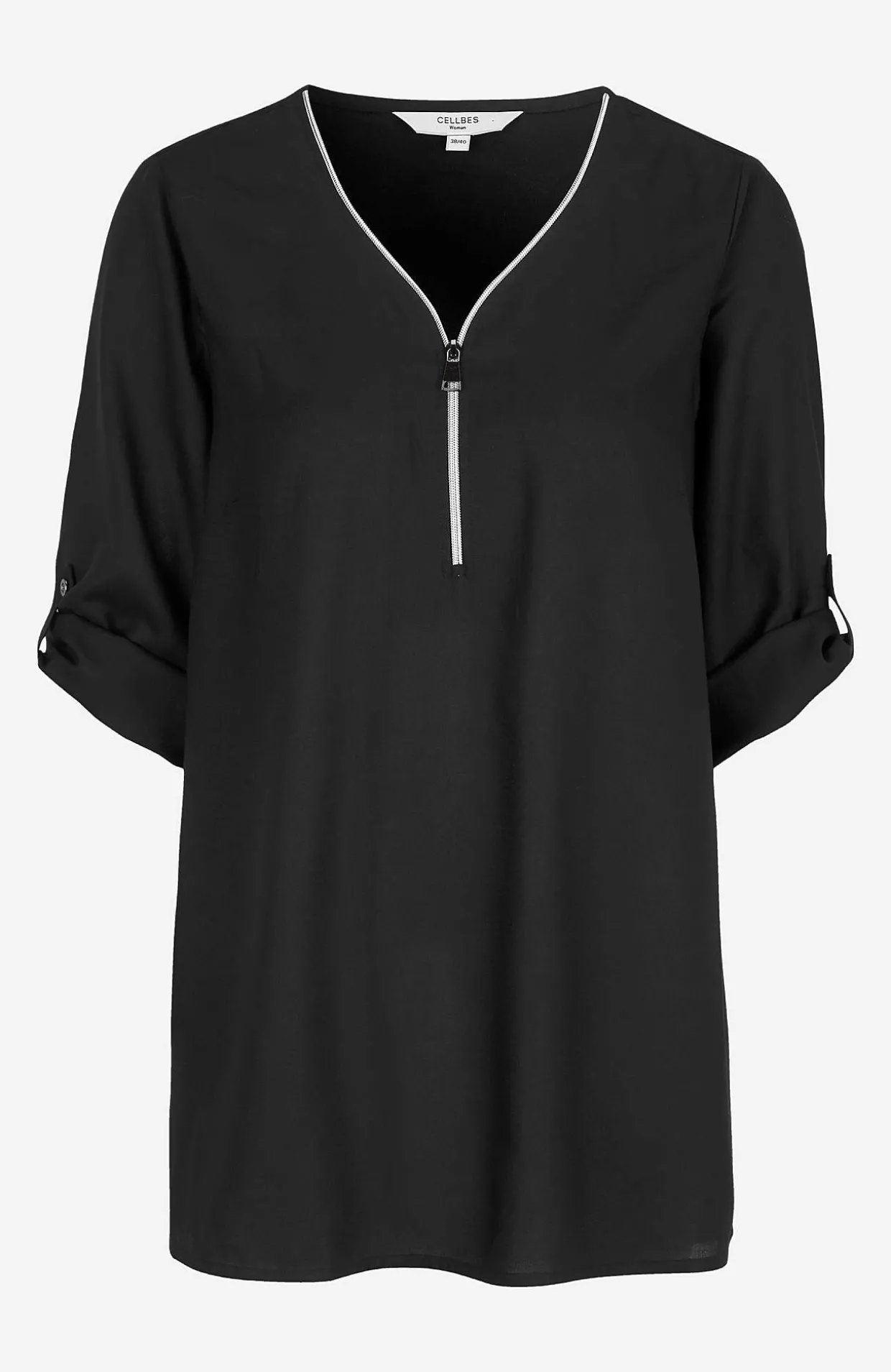 • V-udskåret tunika med lynlås.