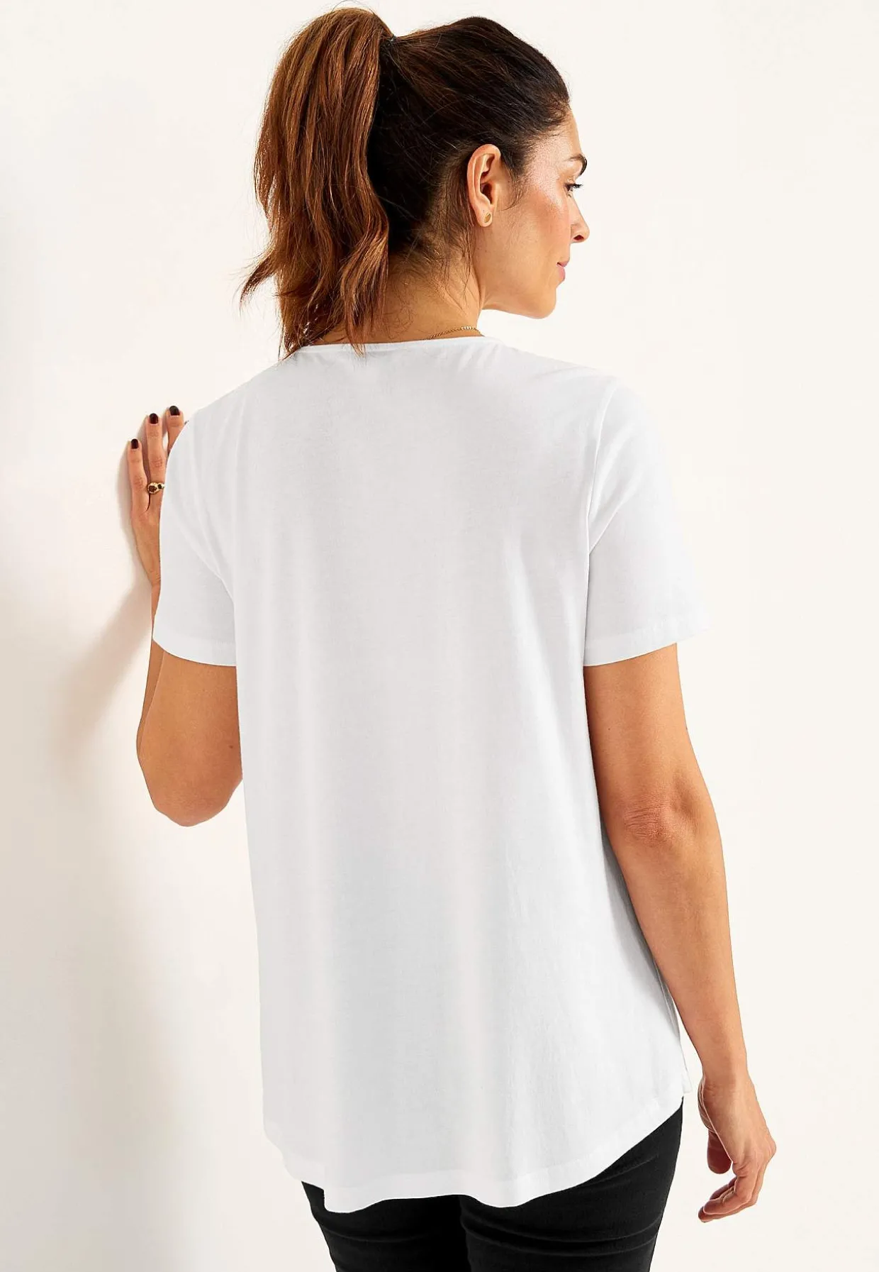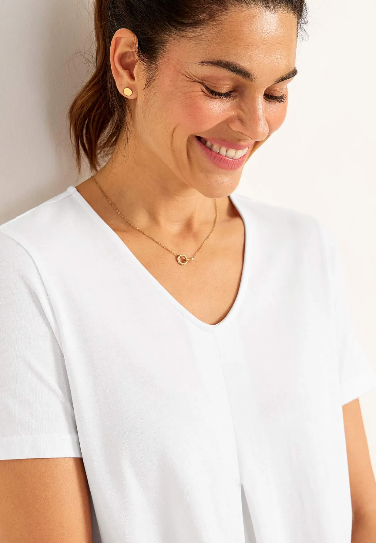 • Flatterende modfold over brystet.