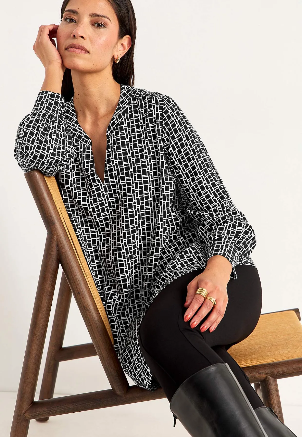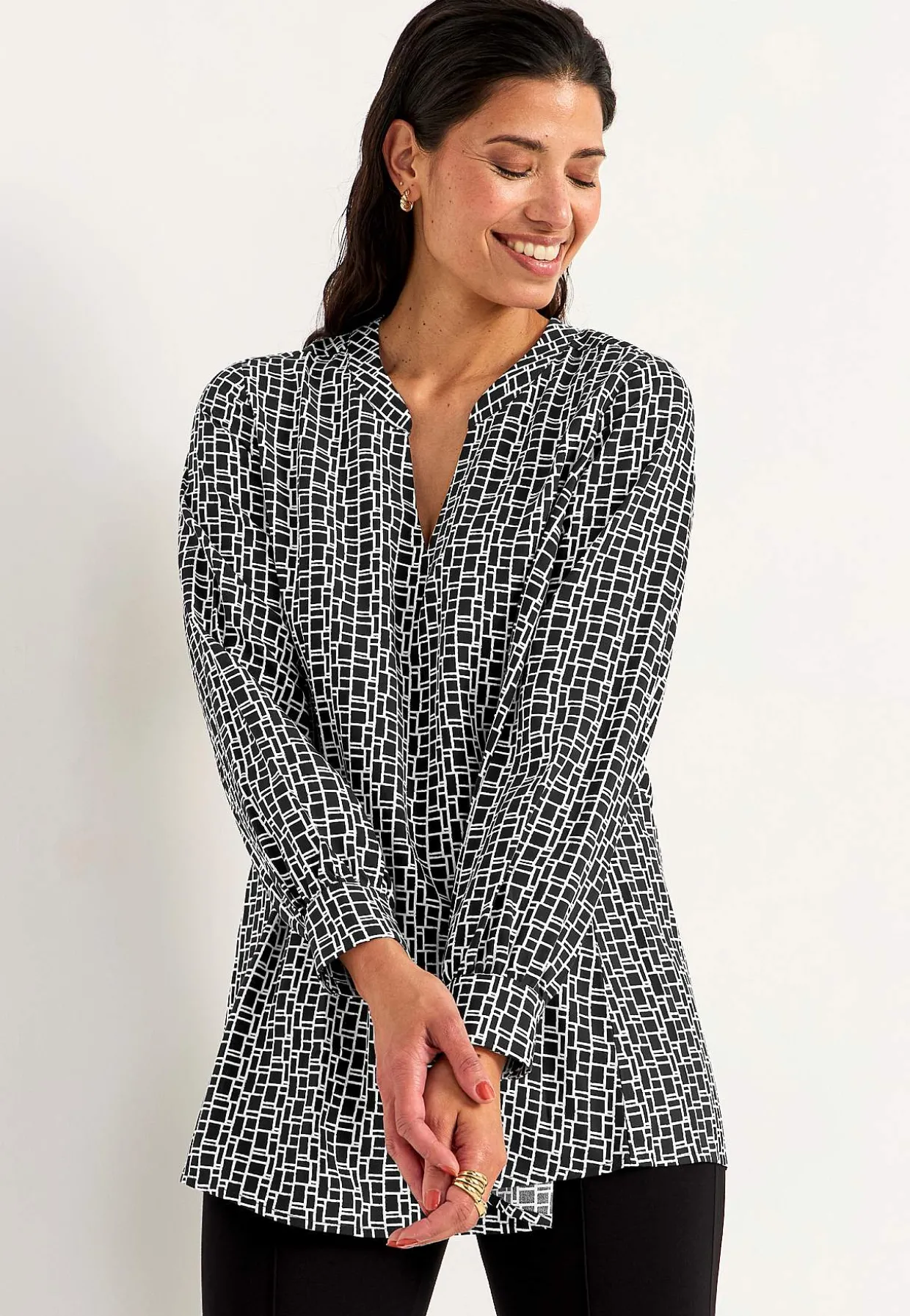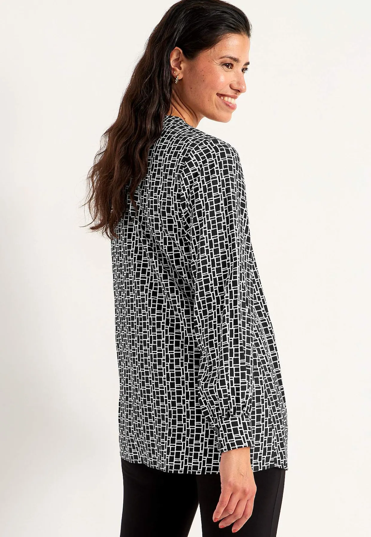 • Lange ærmer med manchet og knapper ved manchetterne.