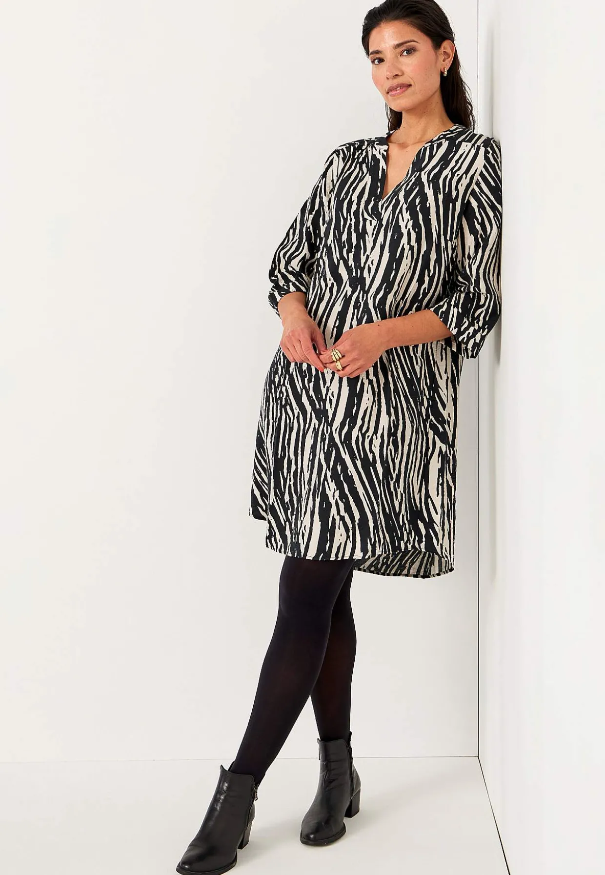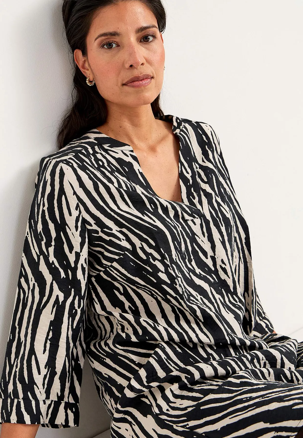 • 3/4 lange, brede ærmer med tynd manchet ved manchetterne.