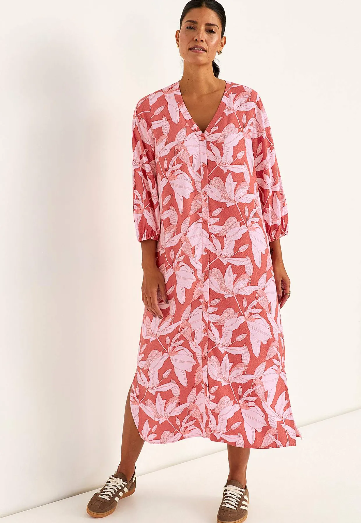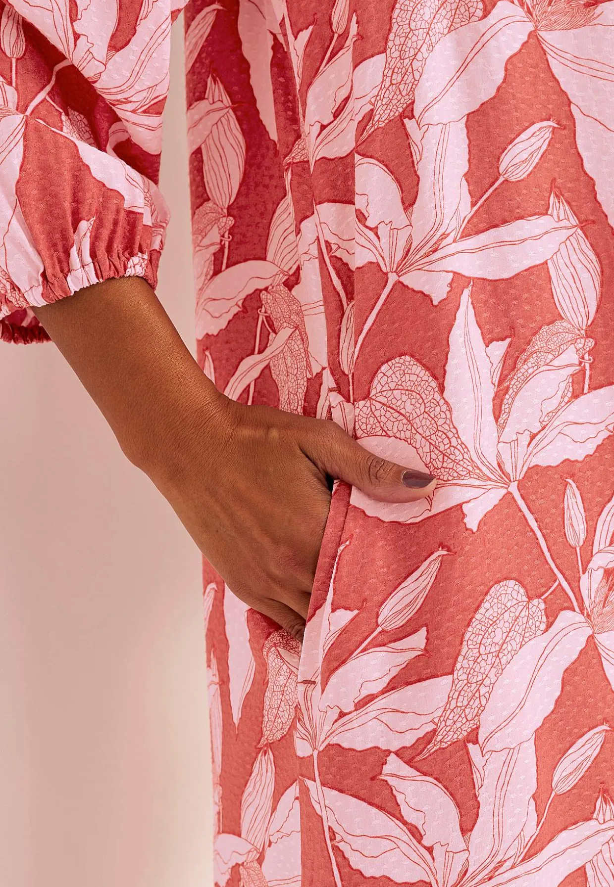 • Ærmer med 3/4 længde og tynd elastik ved manchetterne.