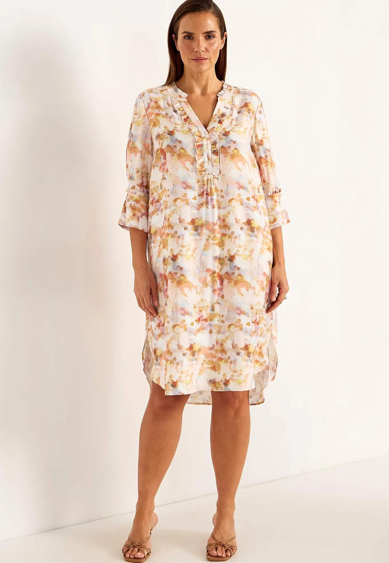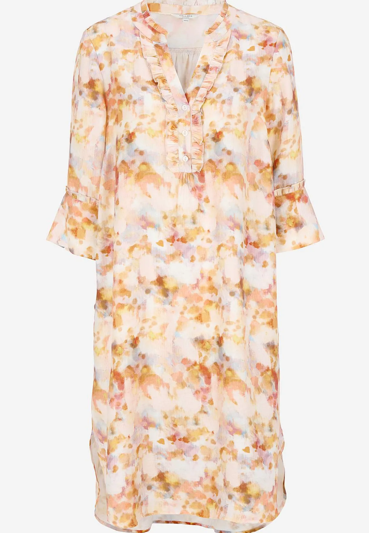 • Brede 3/4 ærmer med volant og bred manchet med knap.