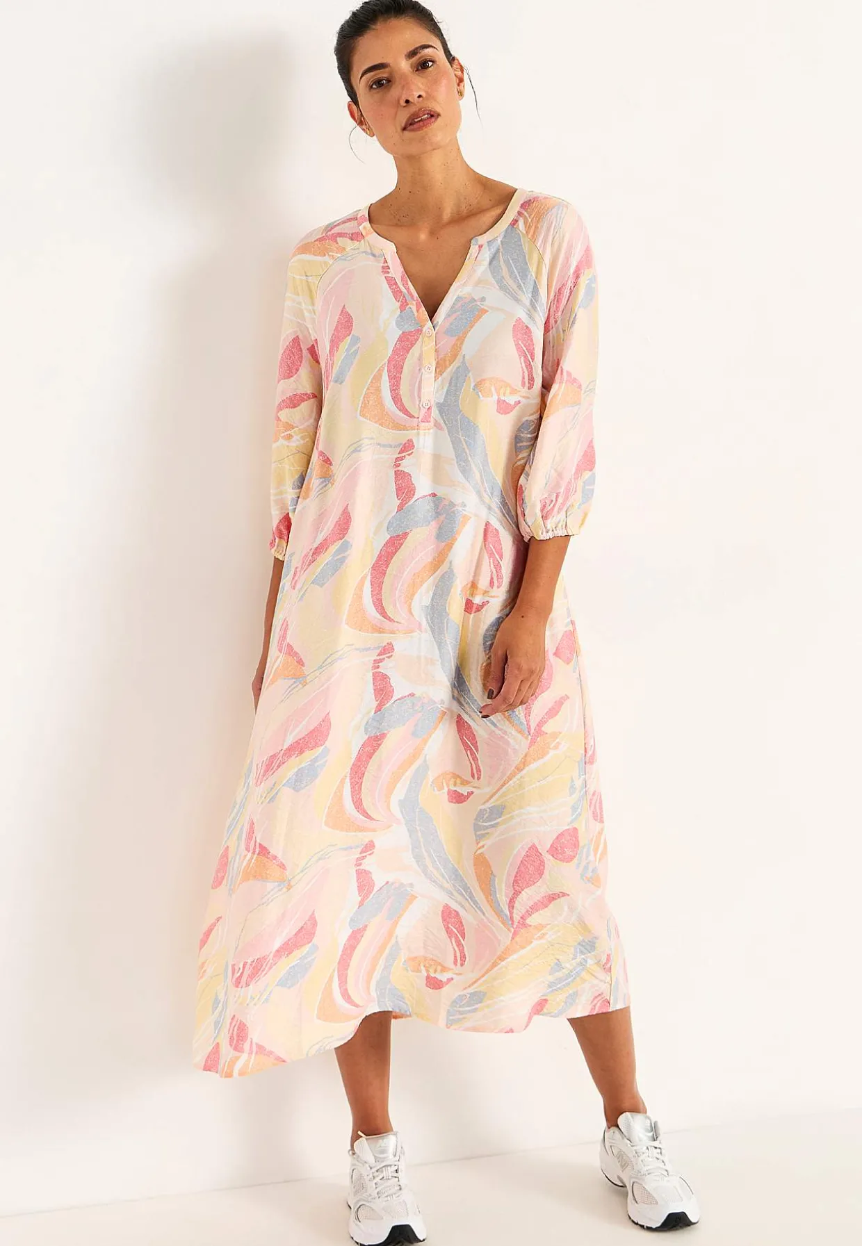 • 3/4 lange, brede raglanærmer med elastik ved manchetterne.