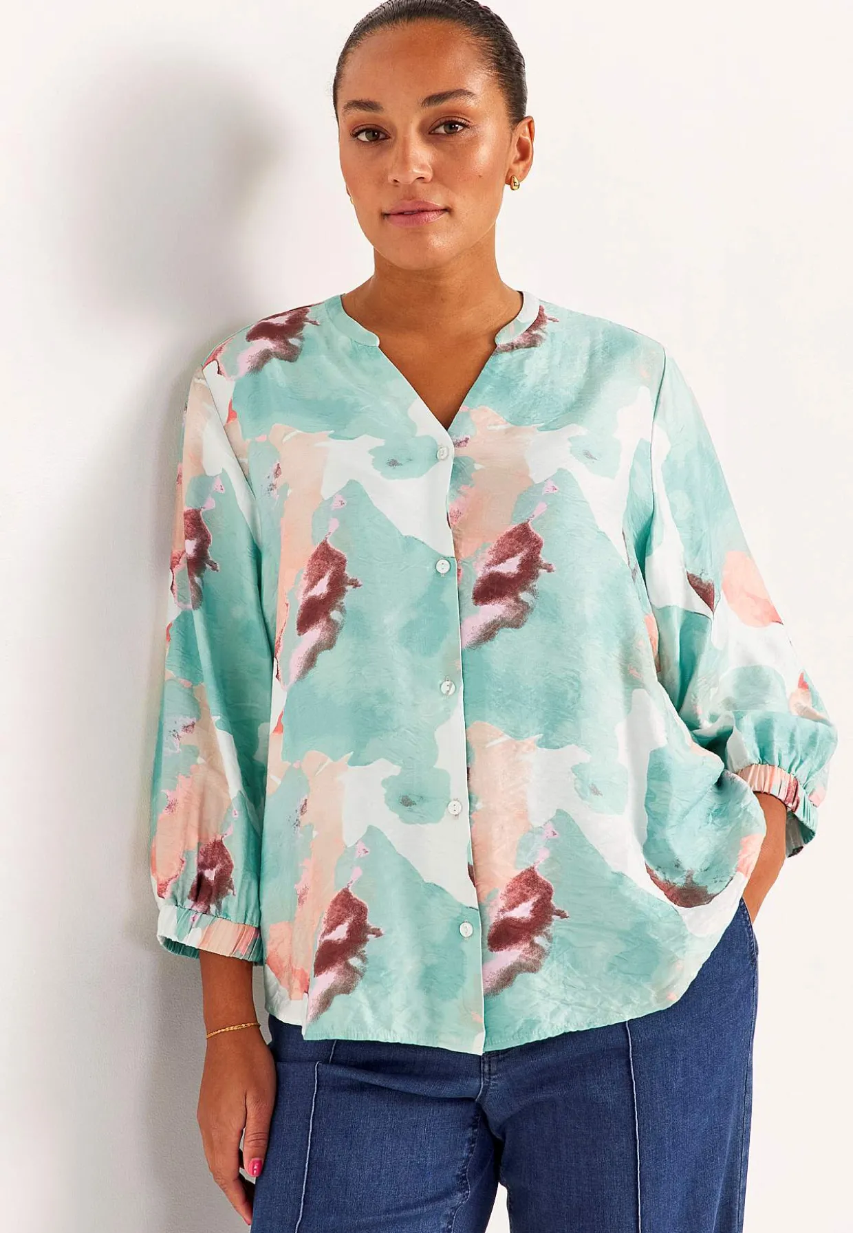 • 3/4 lange, brede ærmer med elastik ved manchetterne.