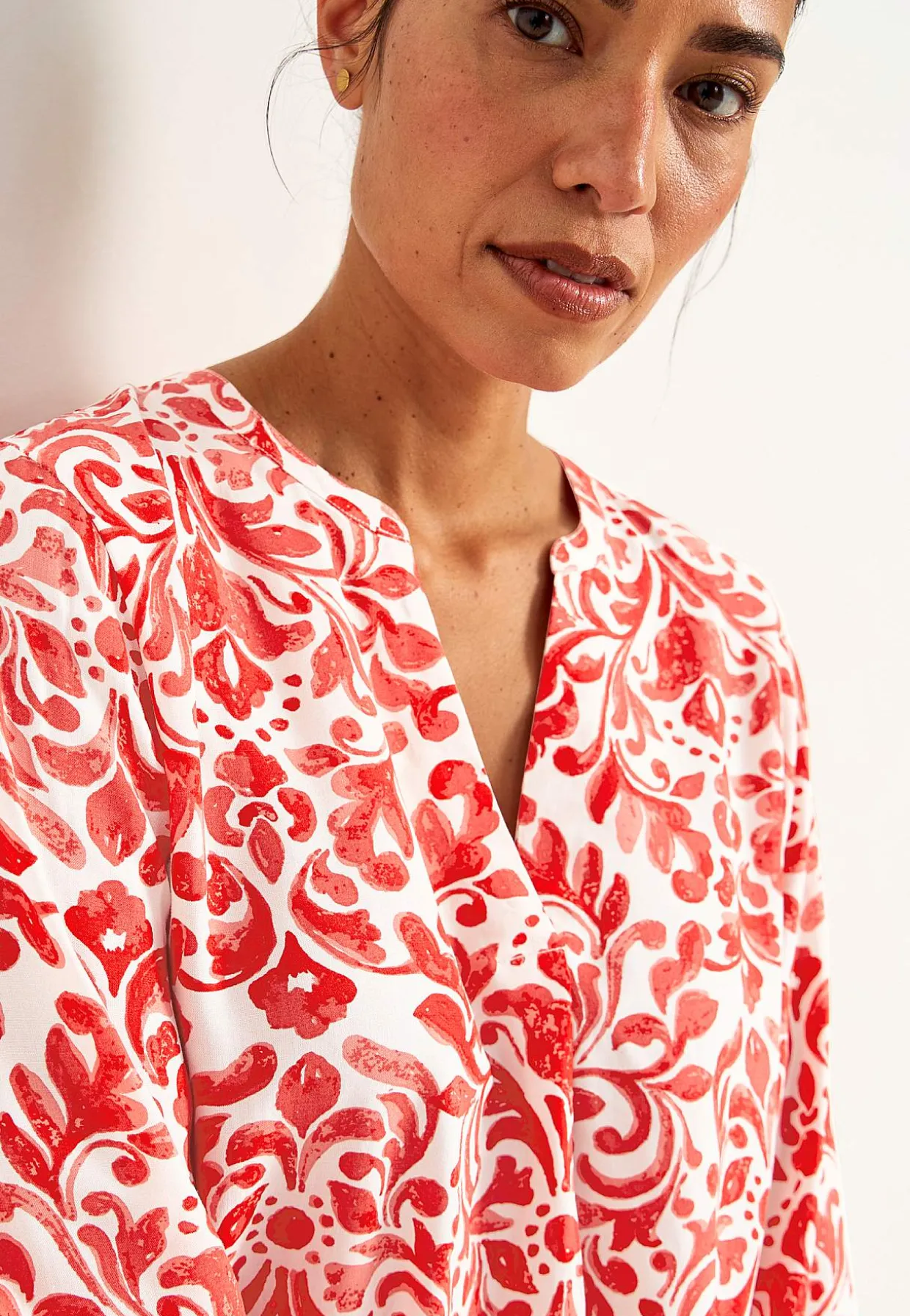 • V-udskåret halsudskæring med dekorativt læg nederst.