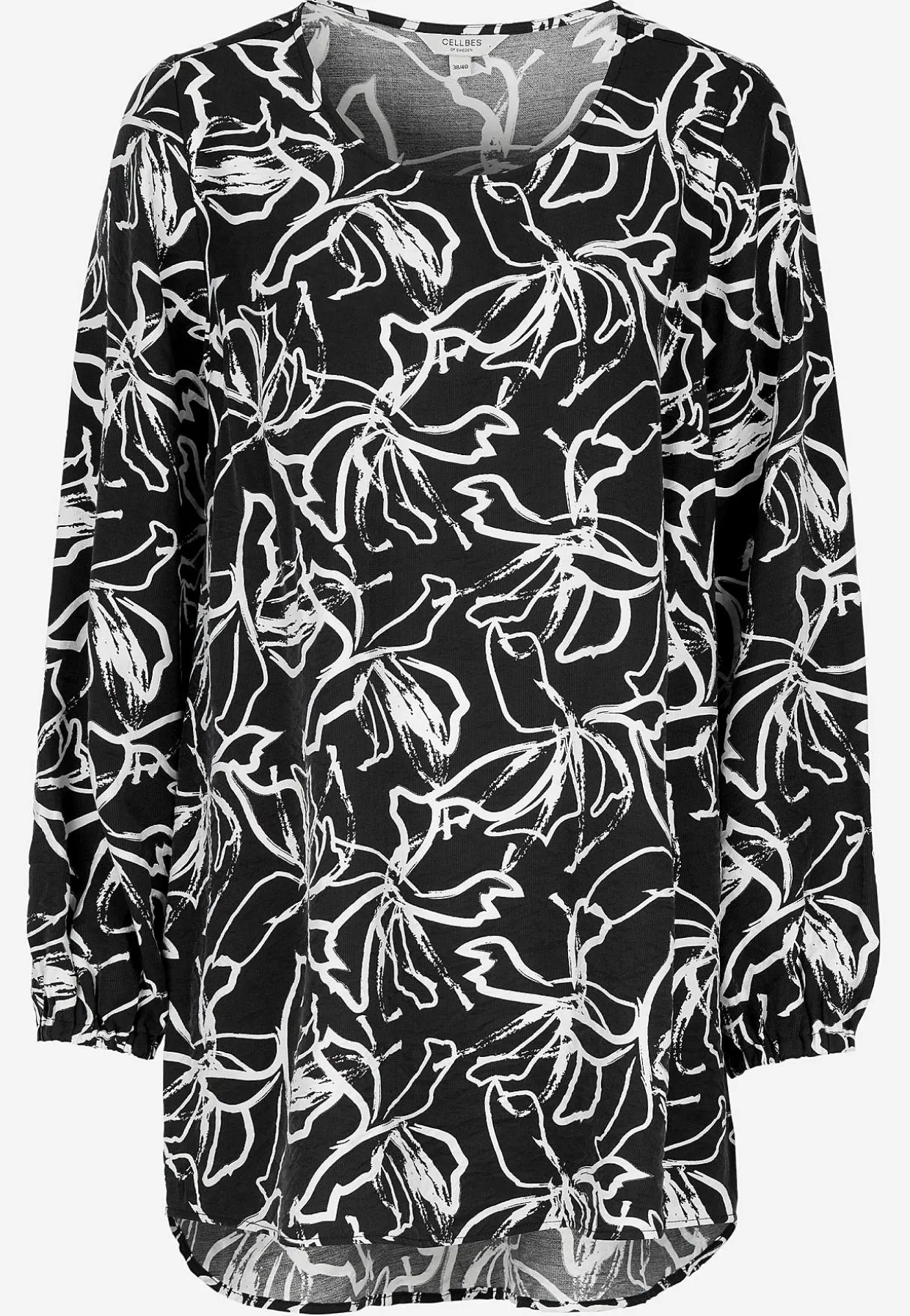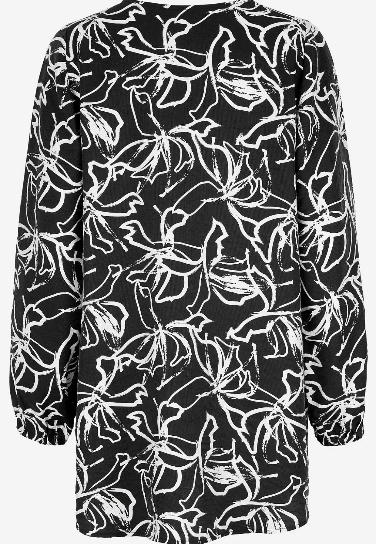 • Lange, brede ærmer med elastik ved manchetterne.