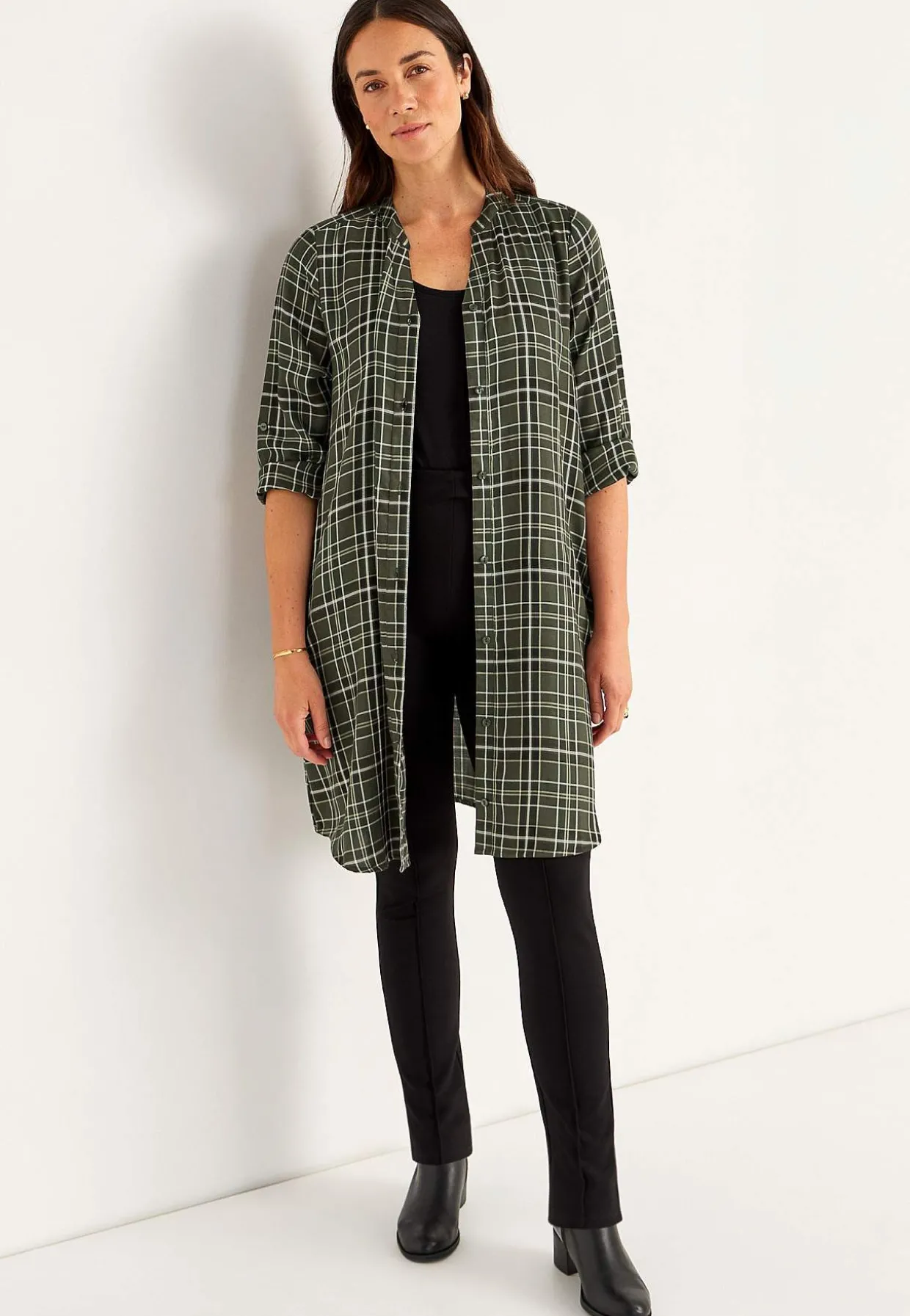 • Foldbare trekvartærmer med knapdetalje.