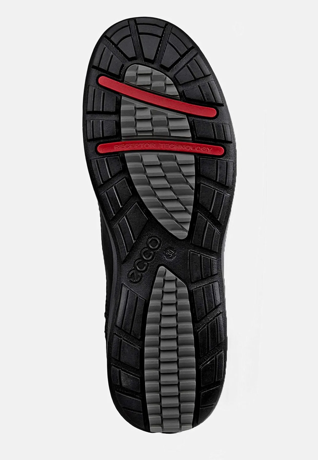 ECCO RECEPTOR®-teknologien kombinerer støddæmpende zoner og ergonomiske elementer i sålen, som tilpasser sig fodens bevægelse og position, hvilket giver forbedret støtte og komfort. Den er udviklet til at reducere muskeltræthed. I stedet for at begrænse din fods bevægelser bevæger skoen sig sammen med din fod og giver mere fleksibilitet.