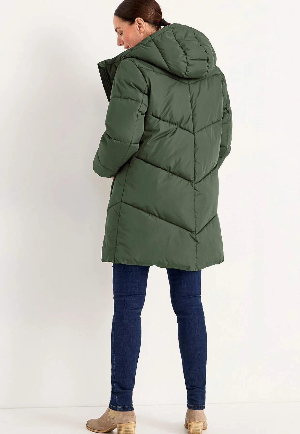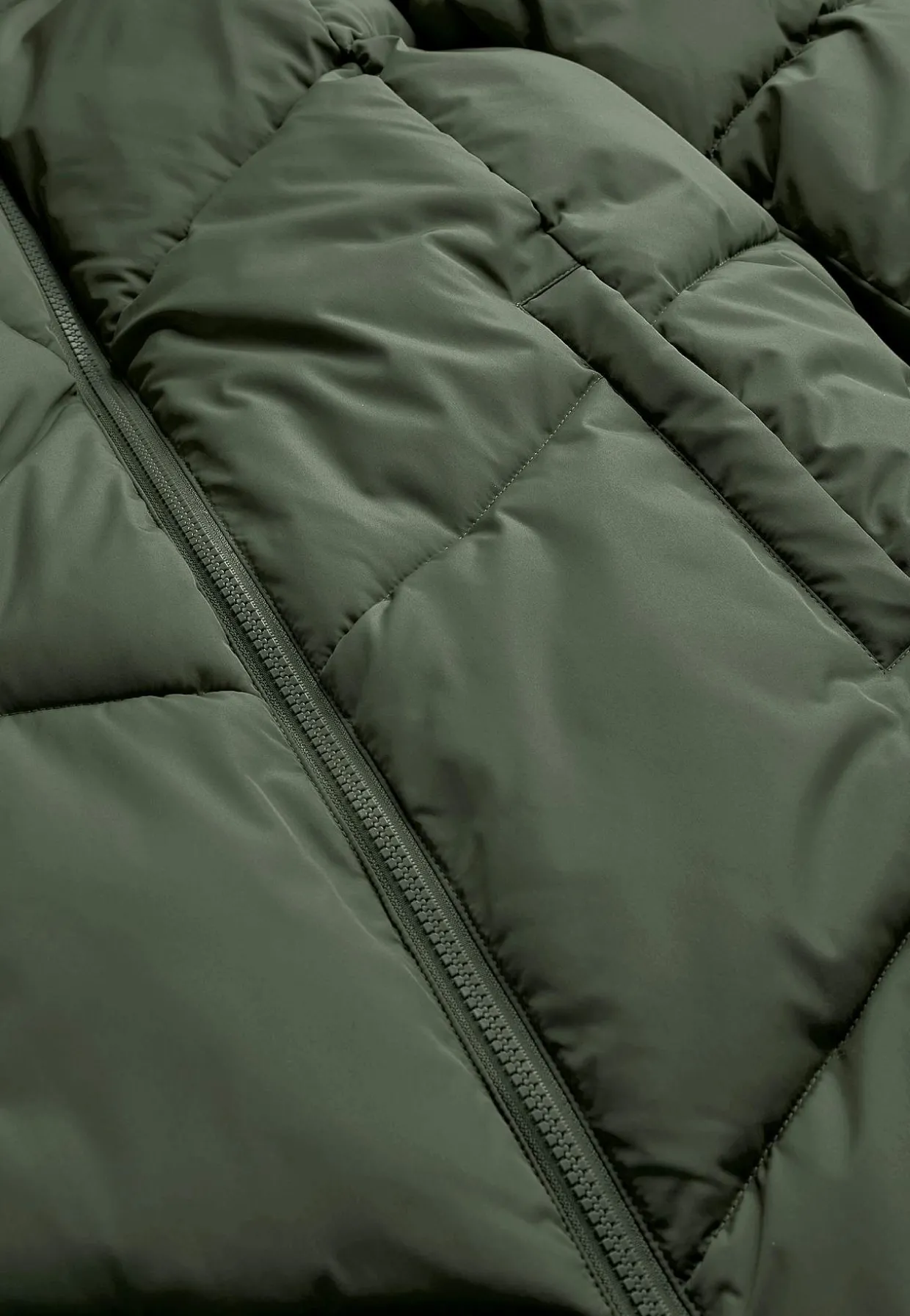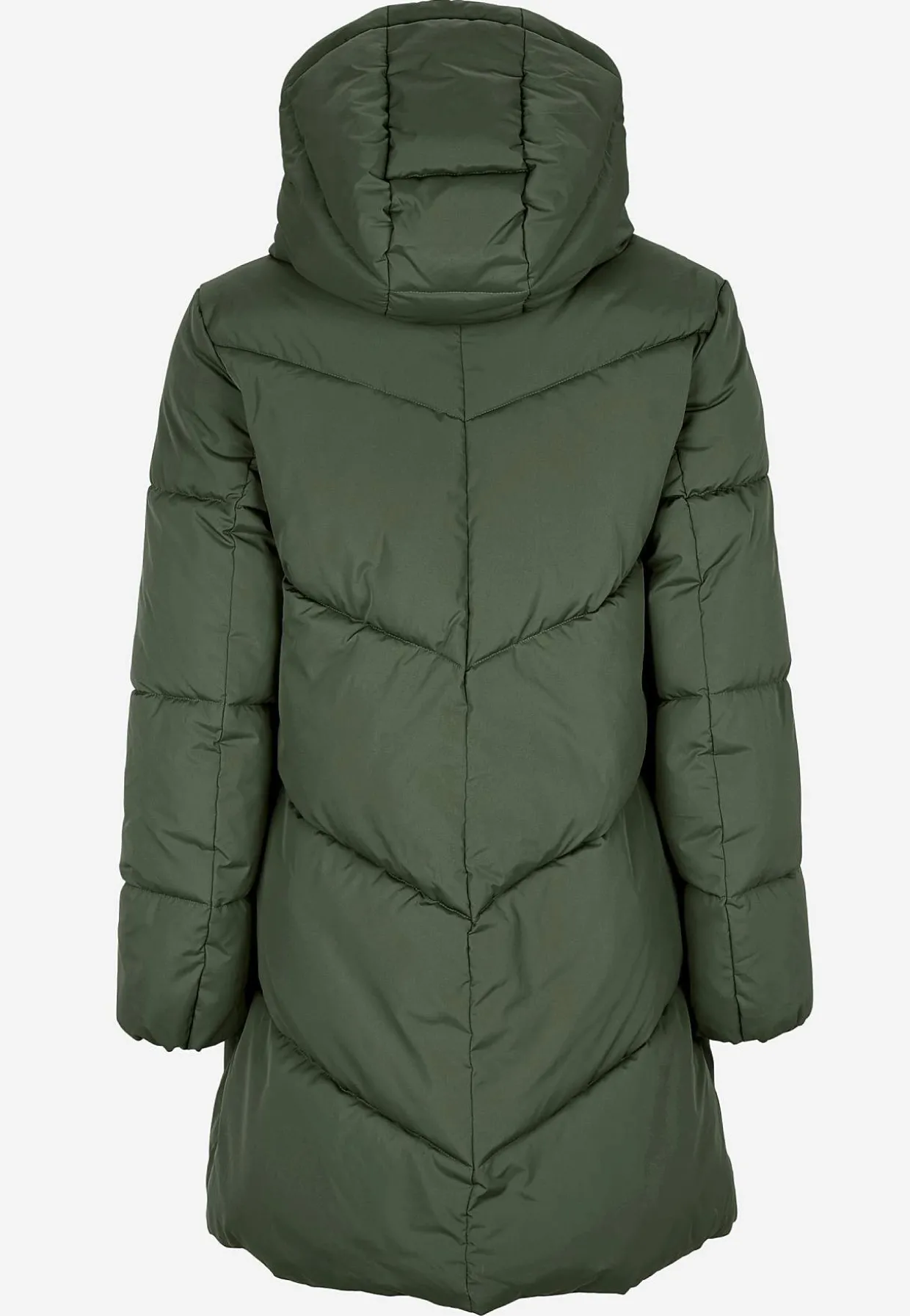• Quiltet, fast hætte.