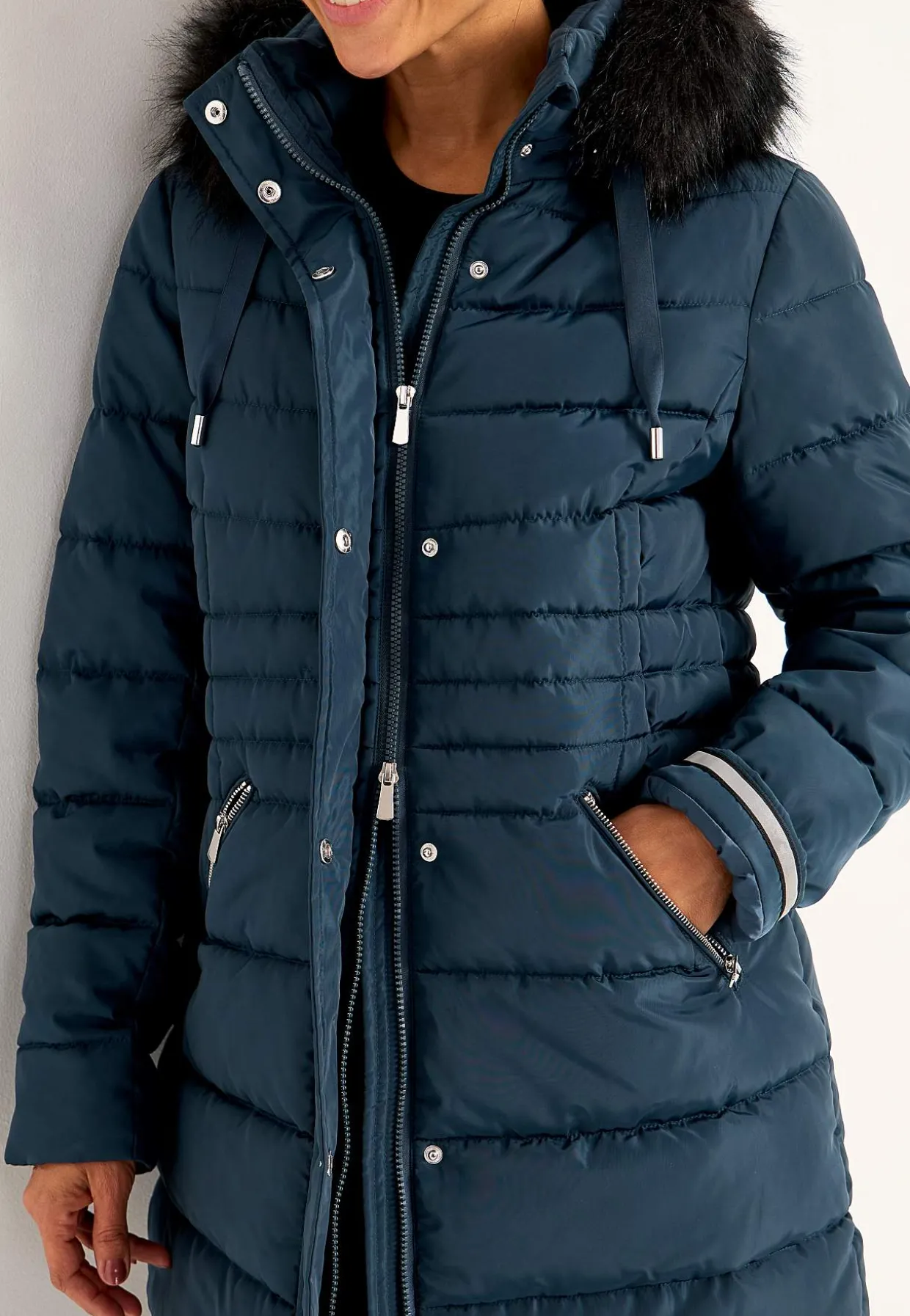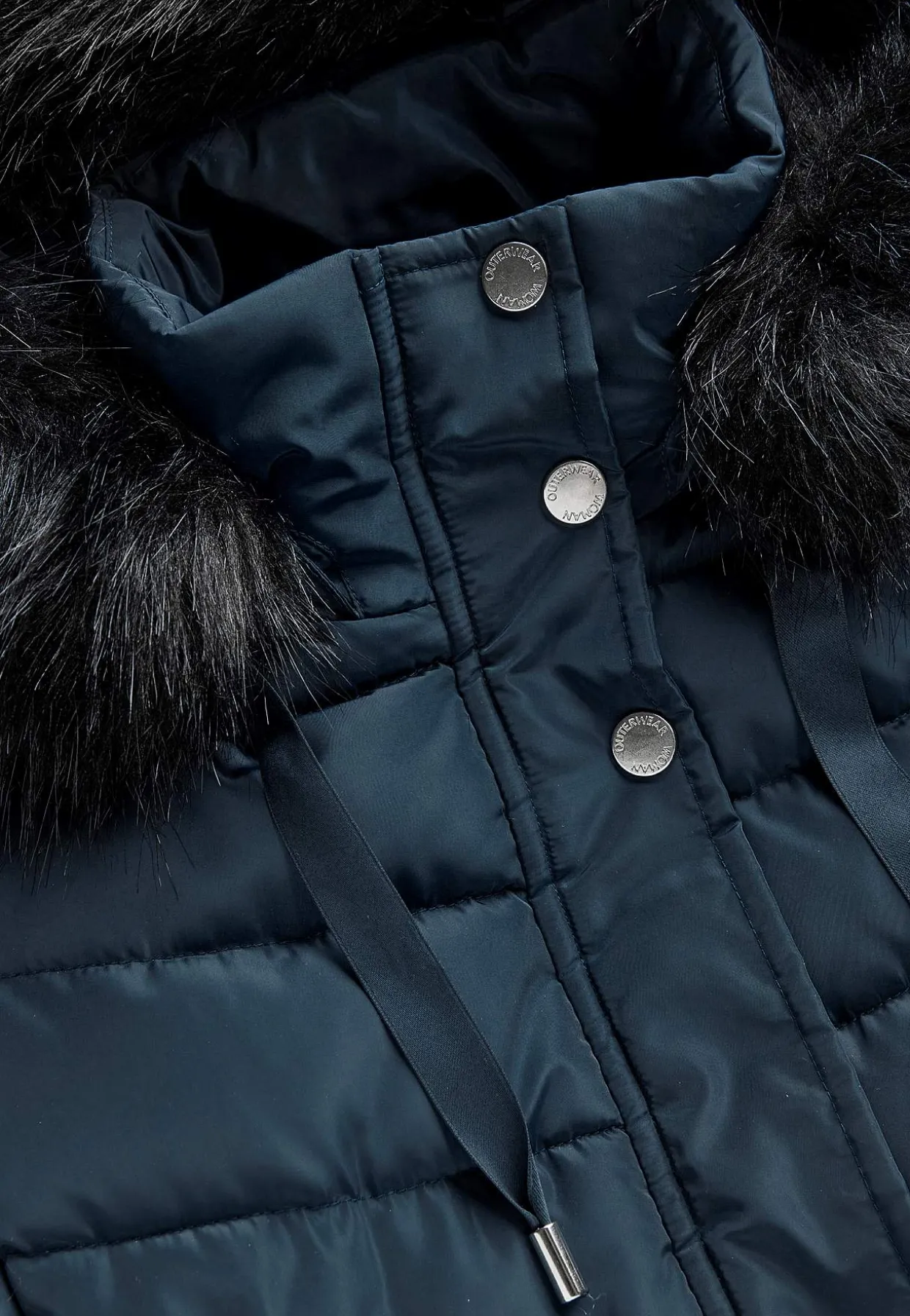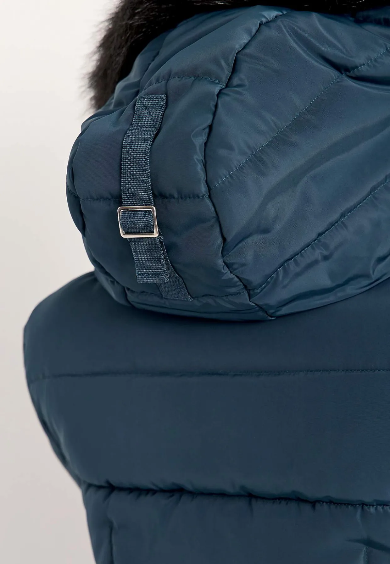 • Aftagelig hætte med aftagelig pelsimitation og snoretræk.