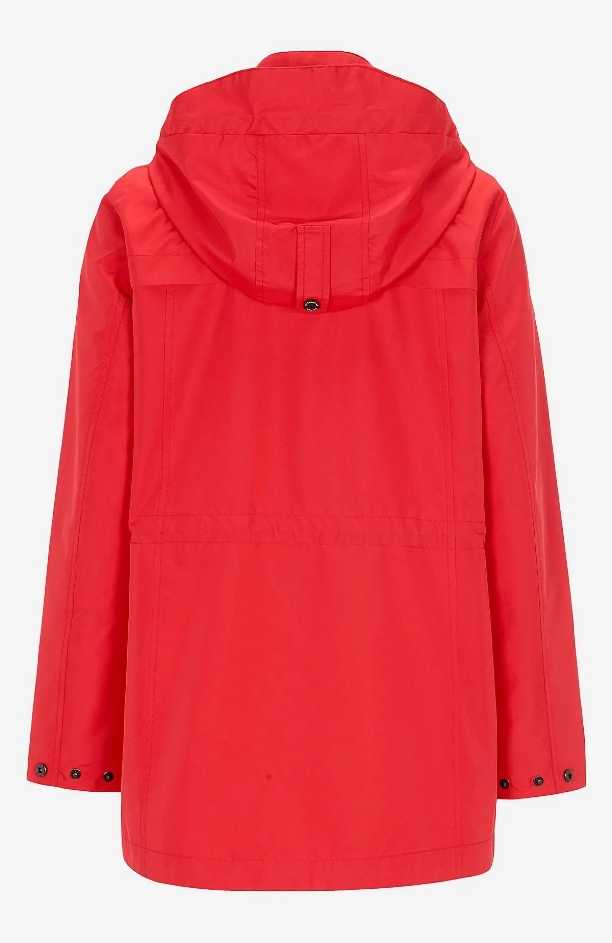 • Vindtæt jakke med aftagelig hætte og justérbar talje.