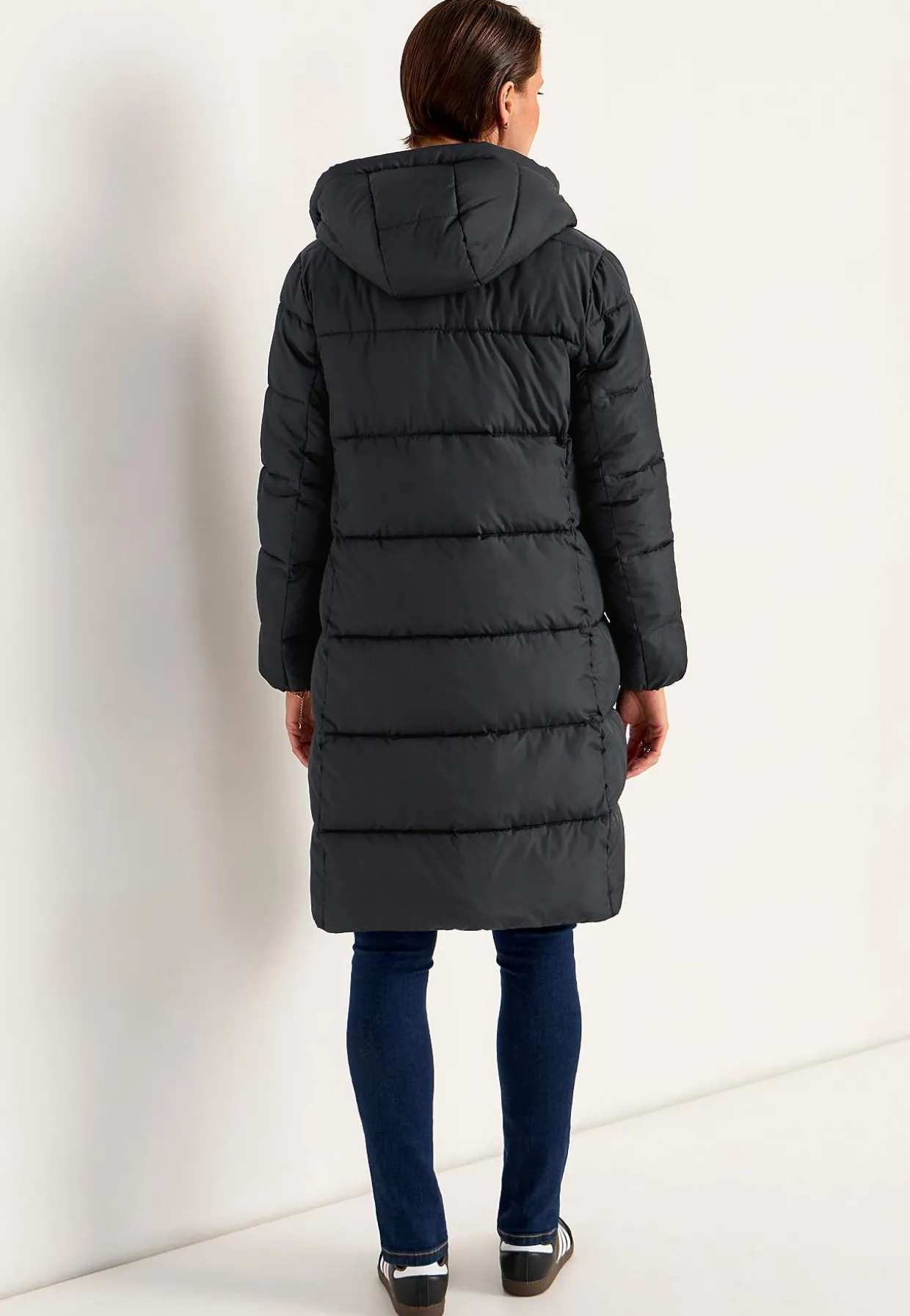 • Lange ærmer med tynd, skjult elastik ved manchetterne.