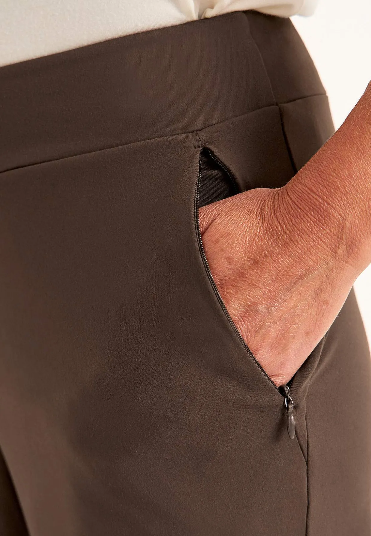• Skråt stillede lommer med pæn lynlås.