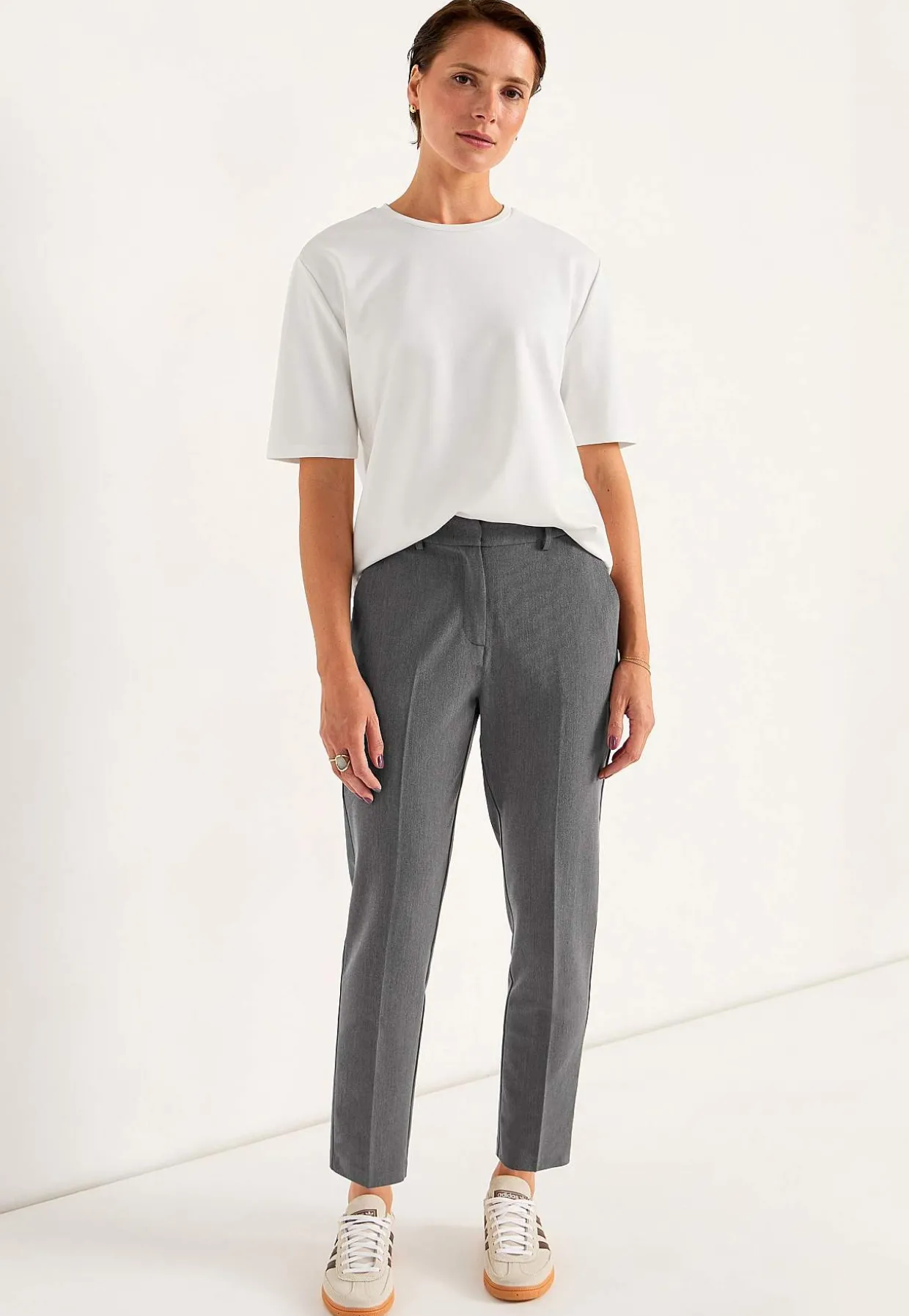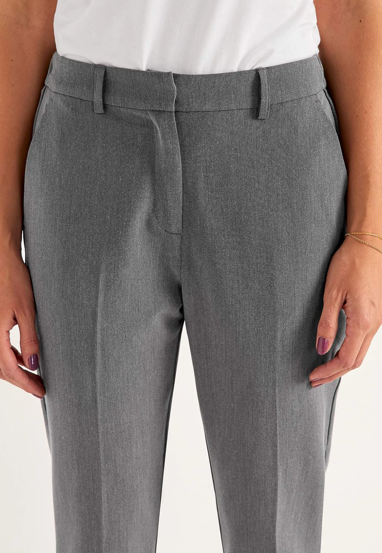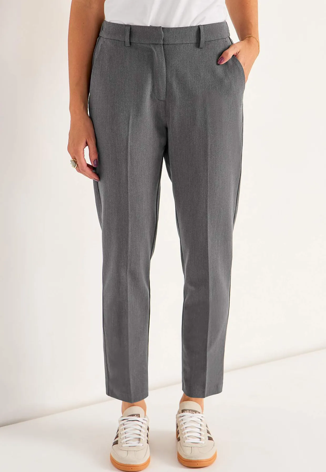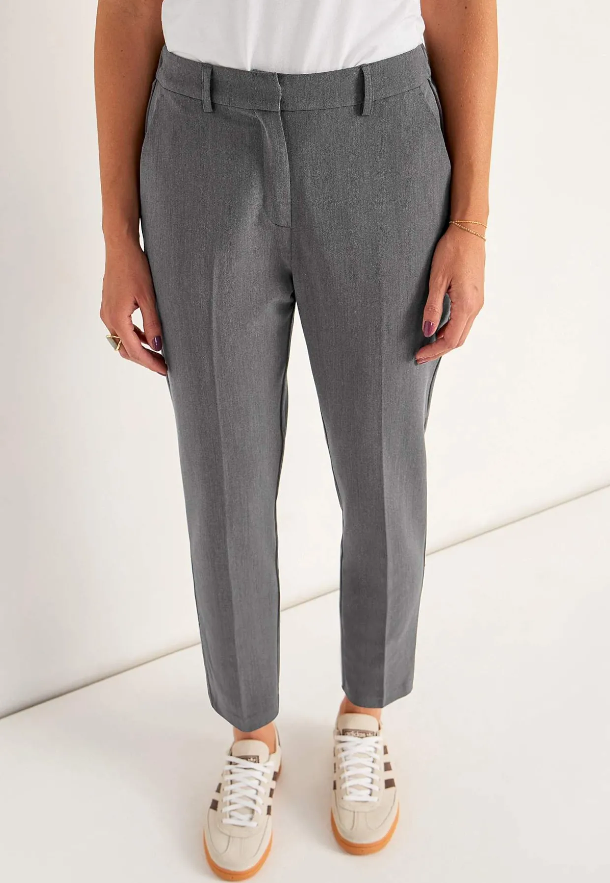 • Lige pasform med indsnævrende ben.