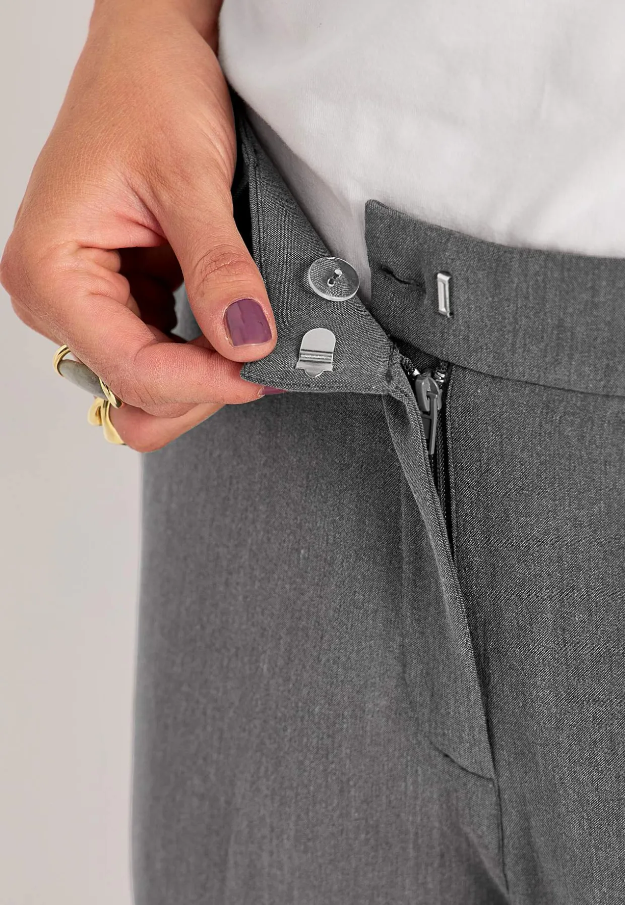 • Normal talje med bæltestropper og bred elastik bagpå.