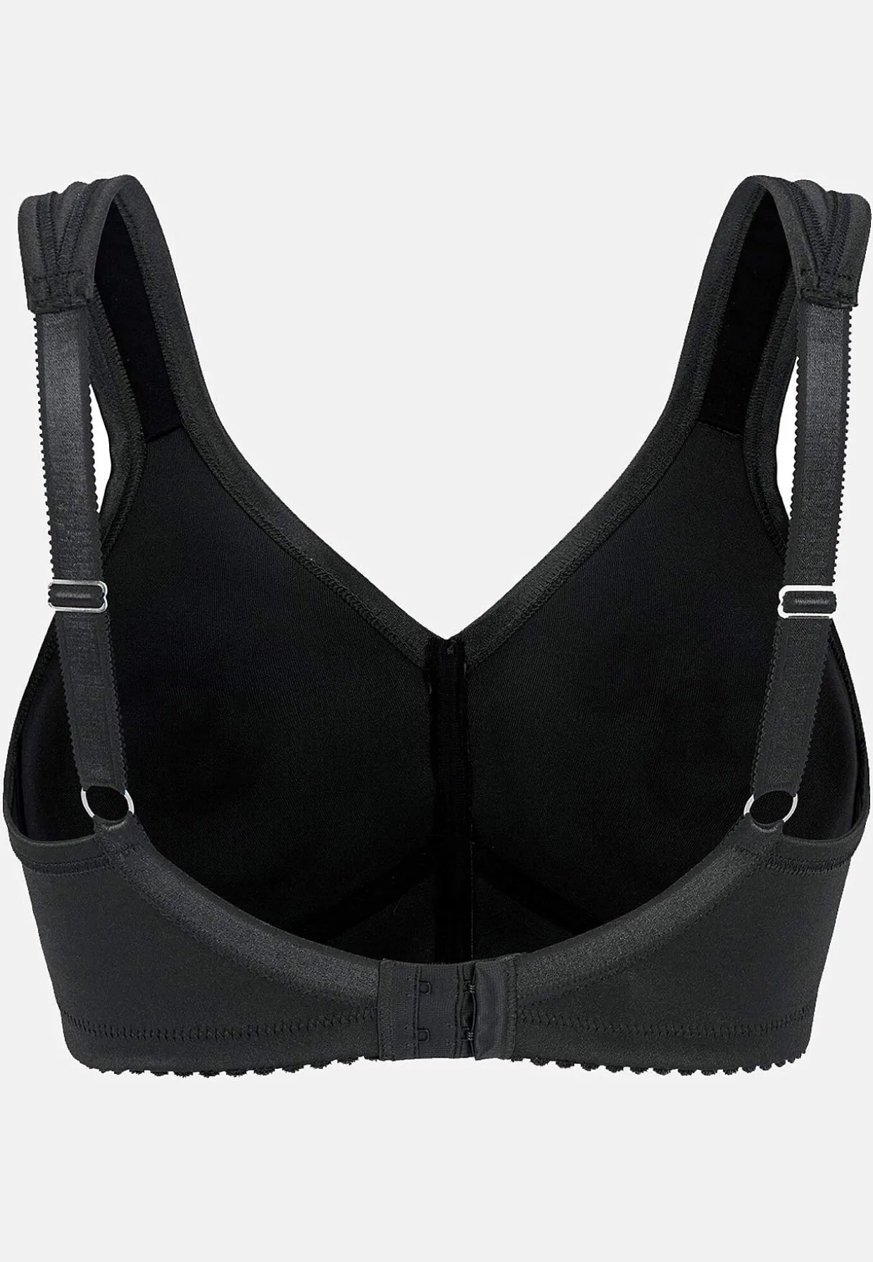 • Bløde kanter ved armhulen giver skånsom støtte uden irritation, mens et bredt elastikbånd med glat inderside holder bh’en behageligt på plads hele dagen.