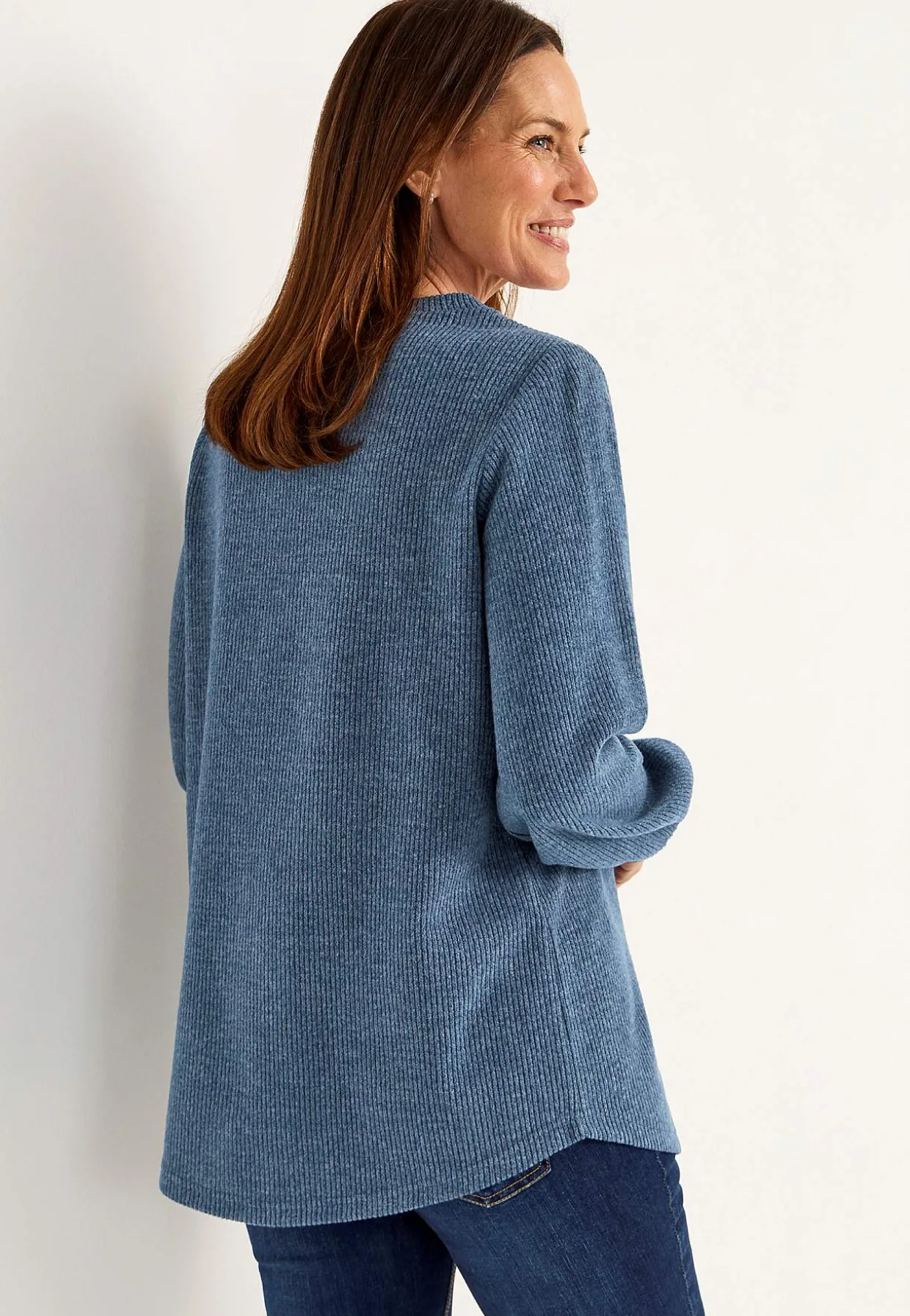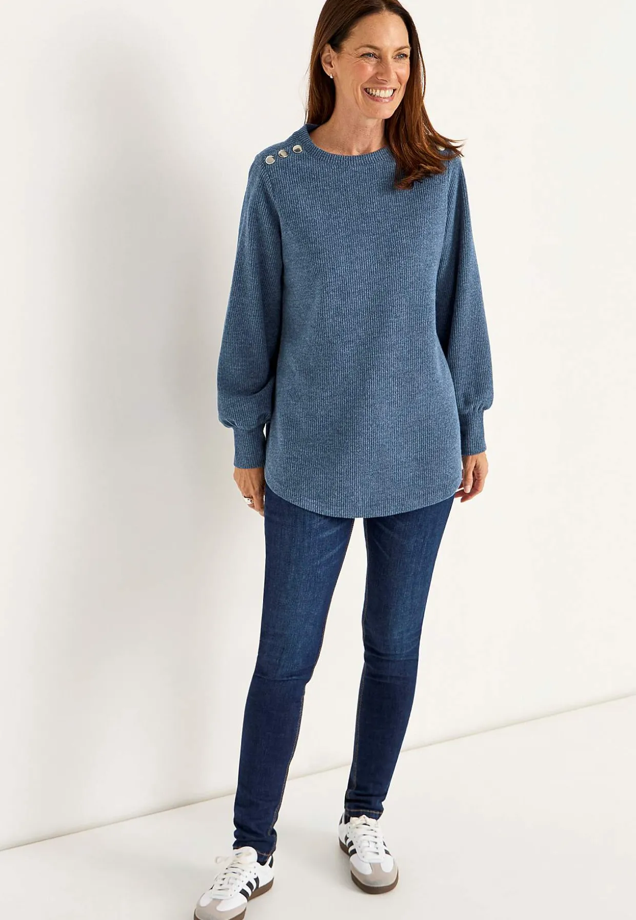 • Rund hals med knapdekoration.
