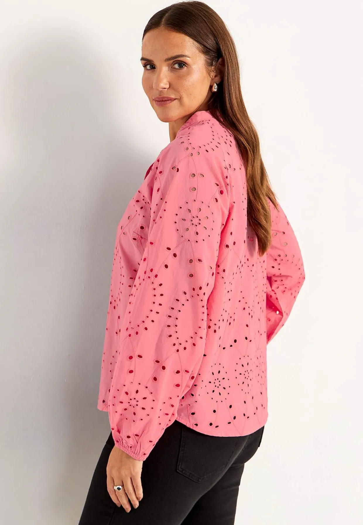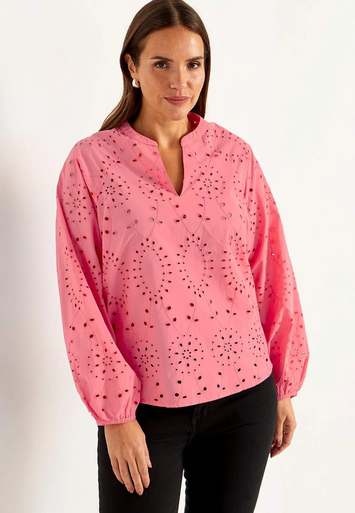 • Langt, bredt raglanærme med elastik ved manchetterne.