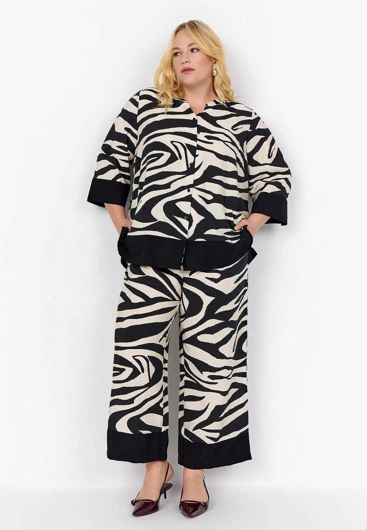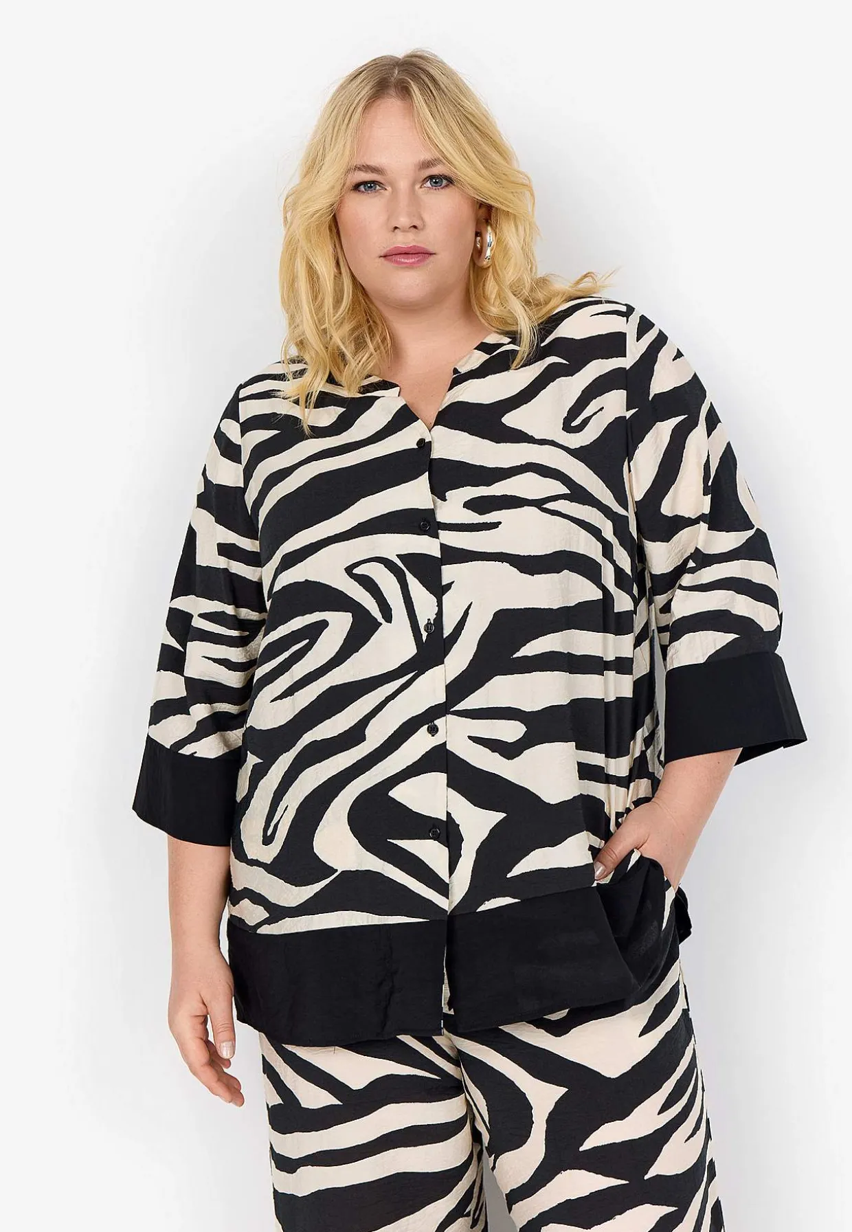 • Trekvartlange, brede ærmer med manchet og knap.
