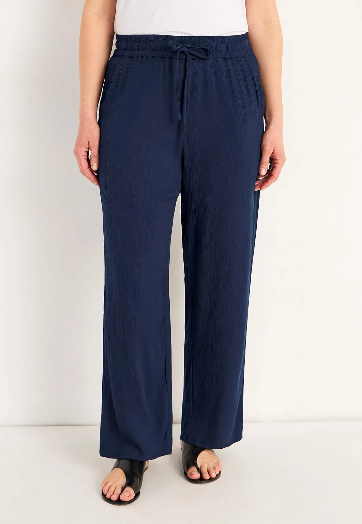 • Bred, blød elastisk linning med snoretræk.