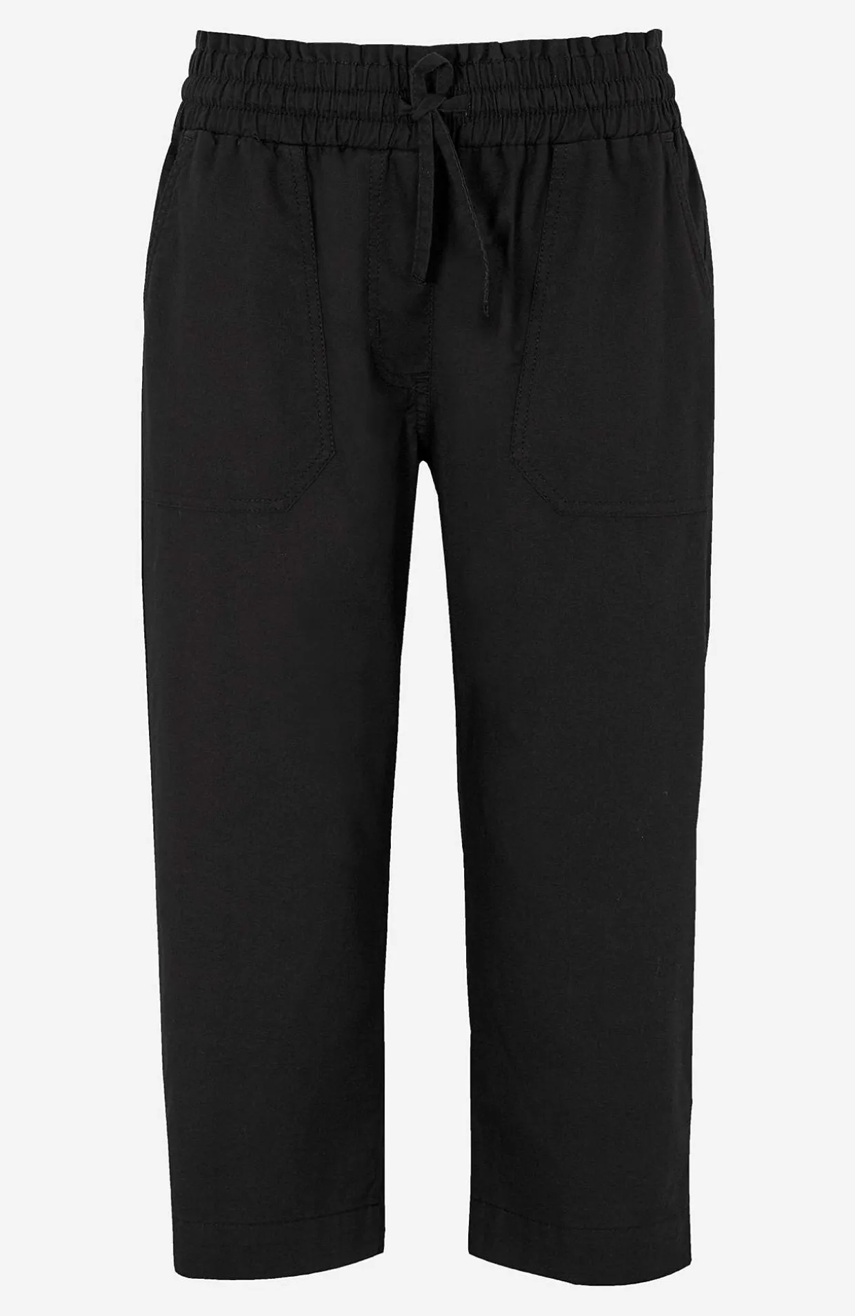 • Elastisk talje med snoretræk og lille volant på toppen