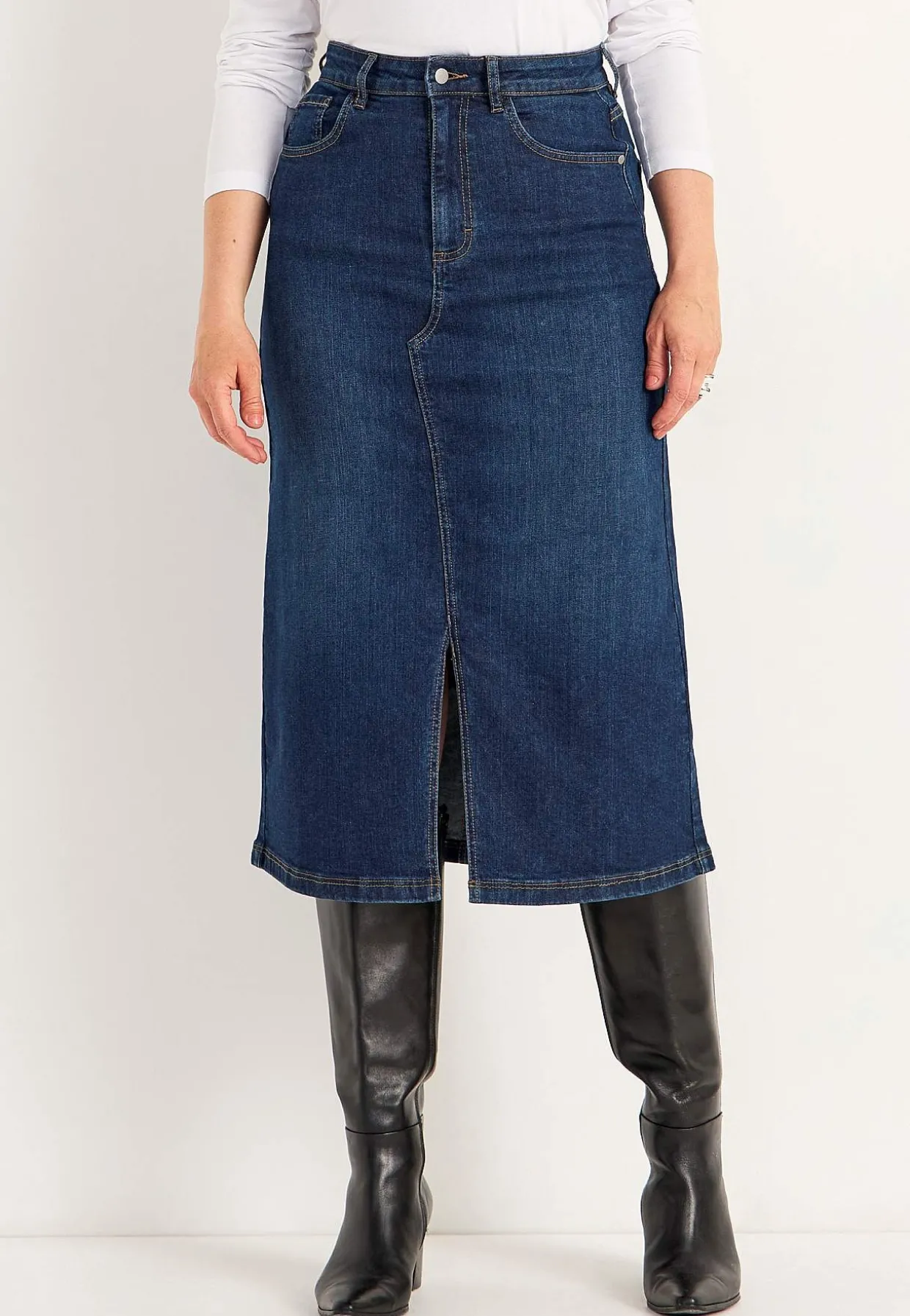 • Stilfuld denimnederdel med slids foran.
