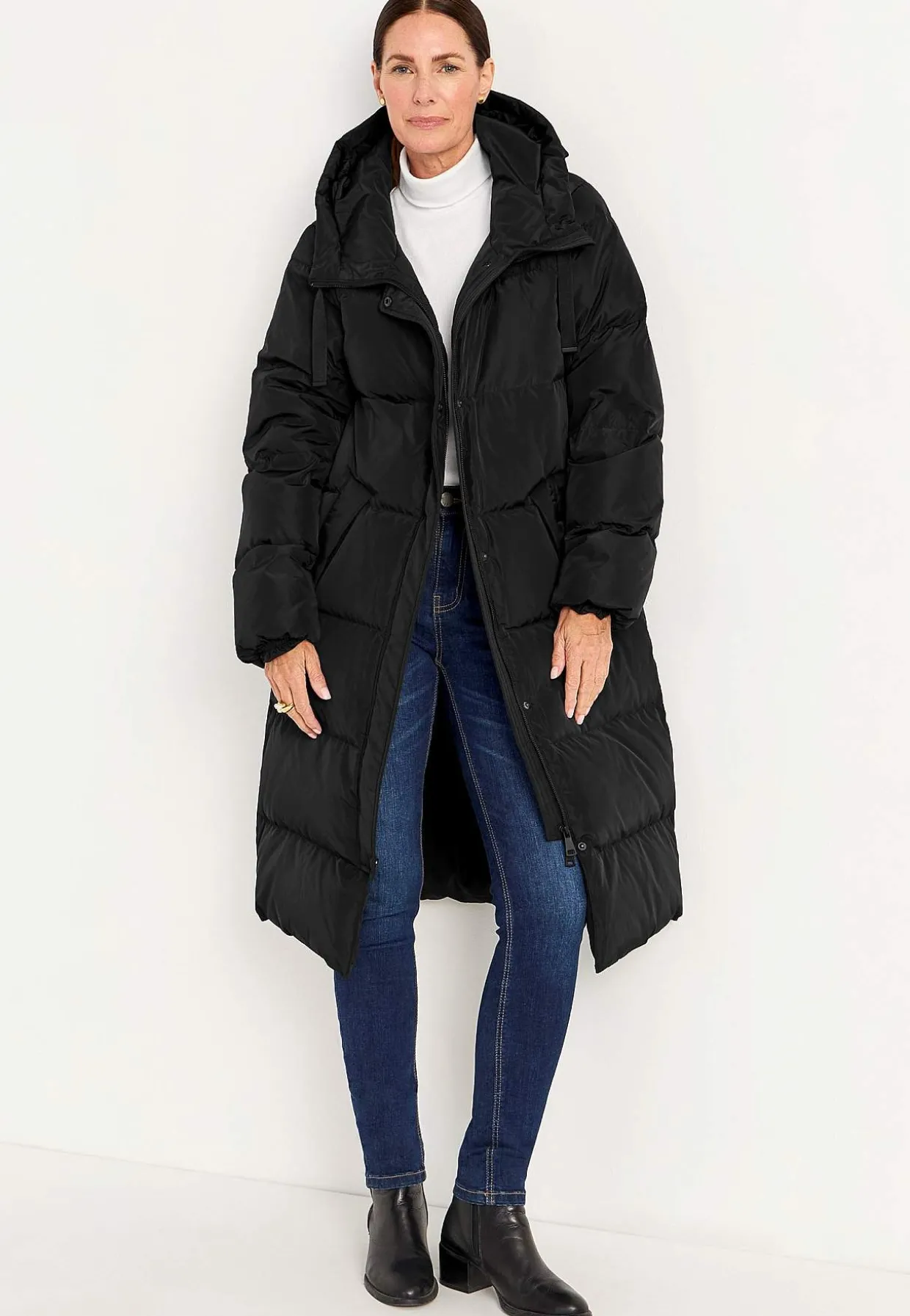 • Lang, varm dunfrakke.