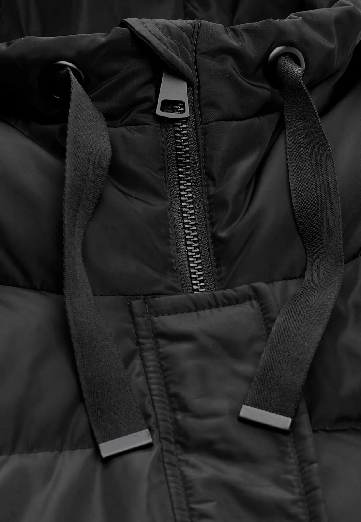 • Syet hætte med snoretræk.
