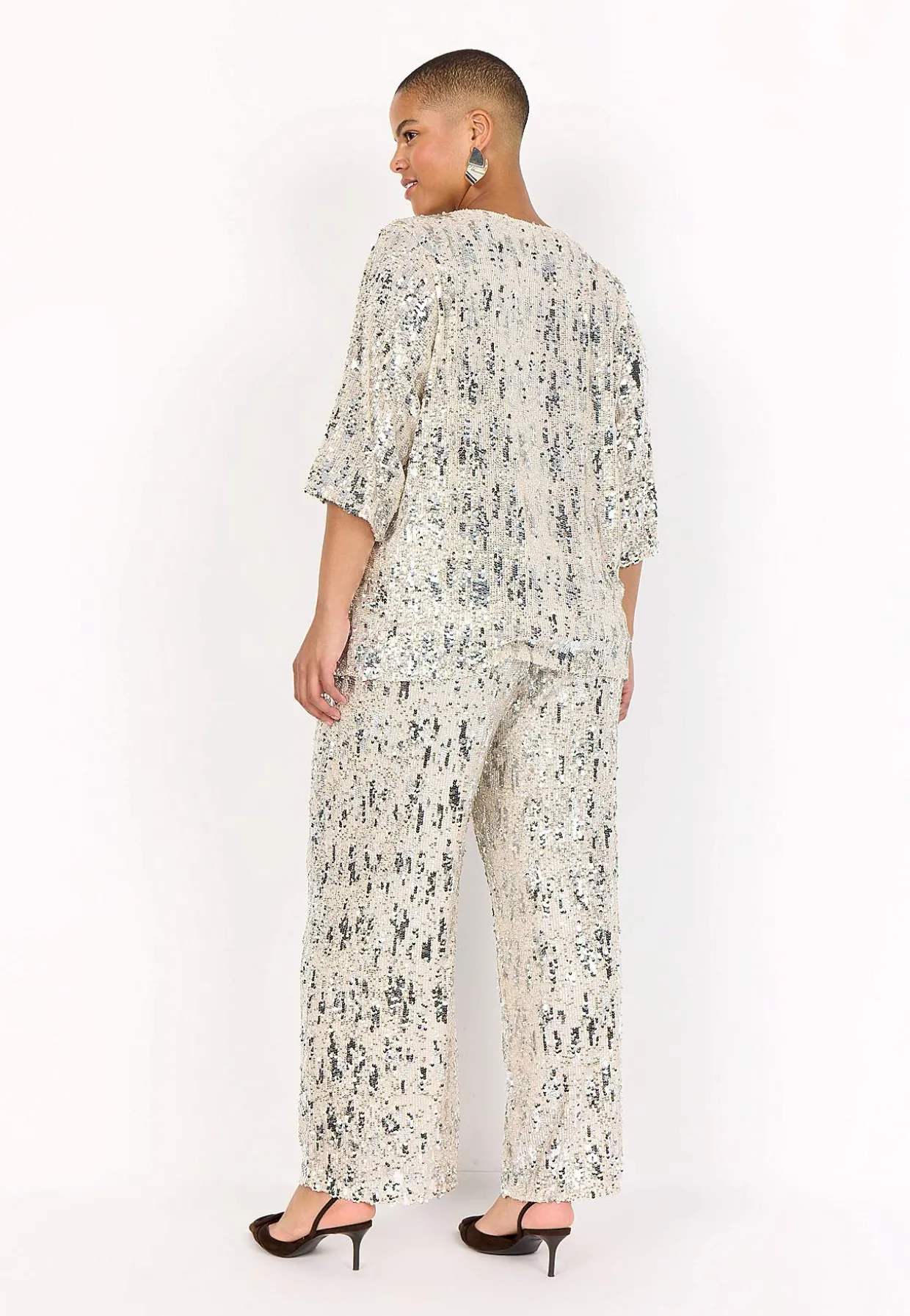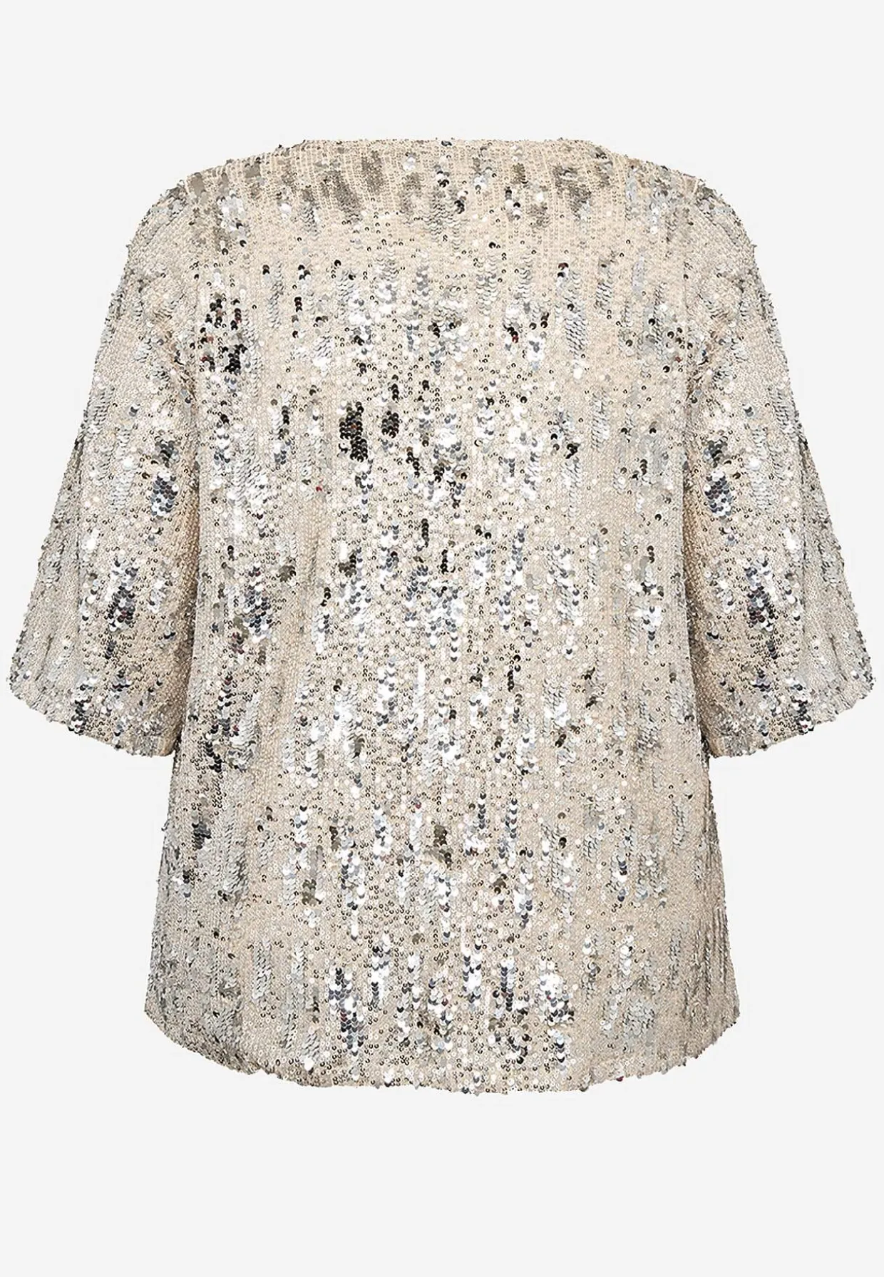 • Festtop med meshstof og små pailleter.