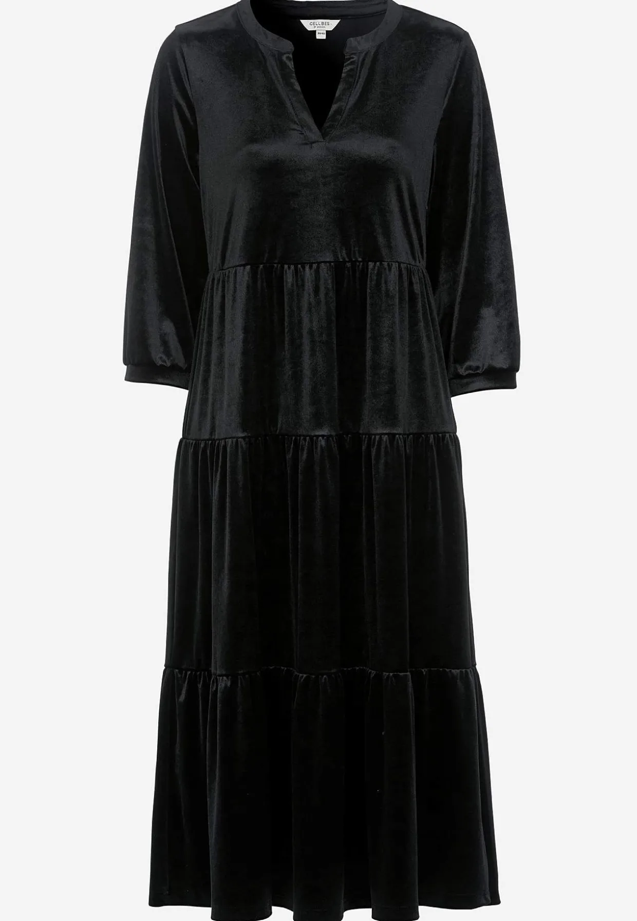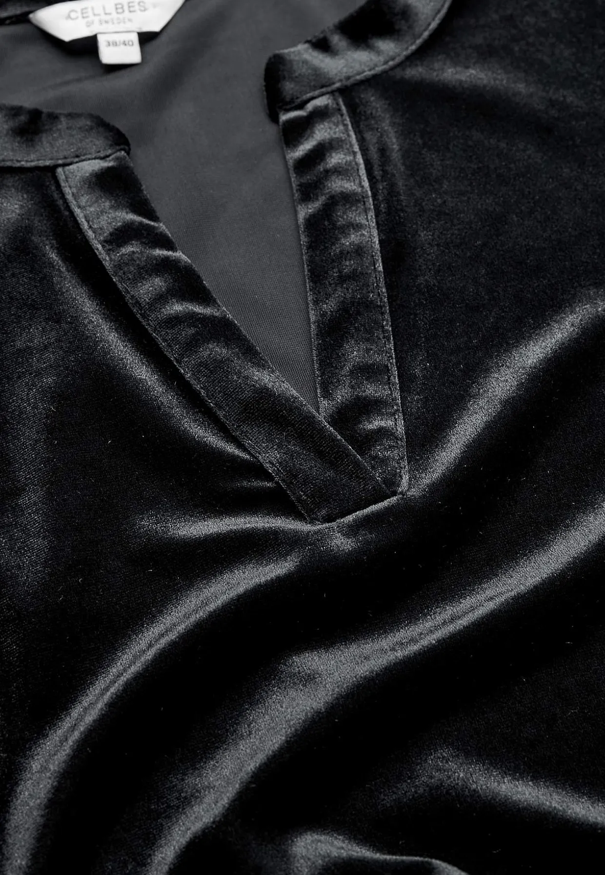 • 3/4 lange ærmer med tynd manchet og samling ved manchetterne.