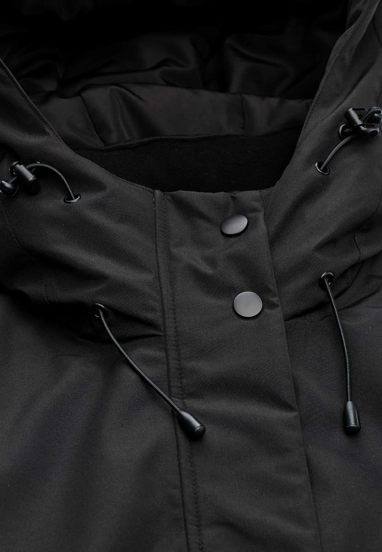 • Syet hætte med træksnøre.