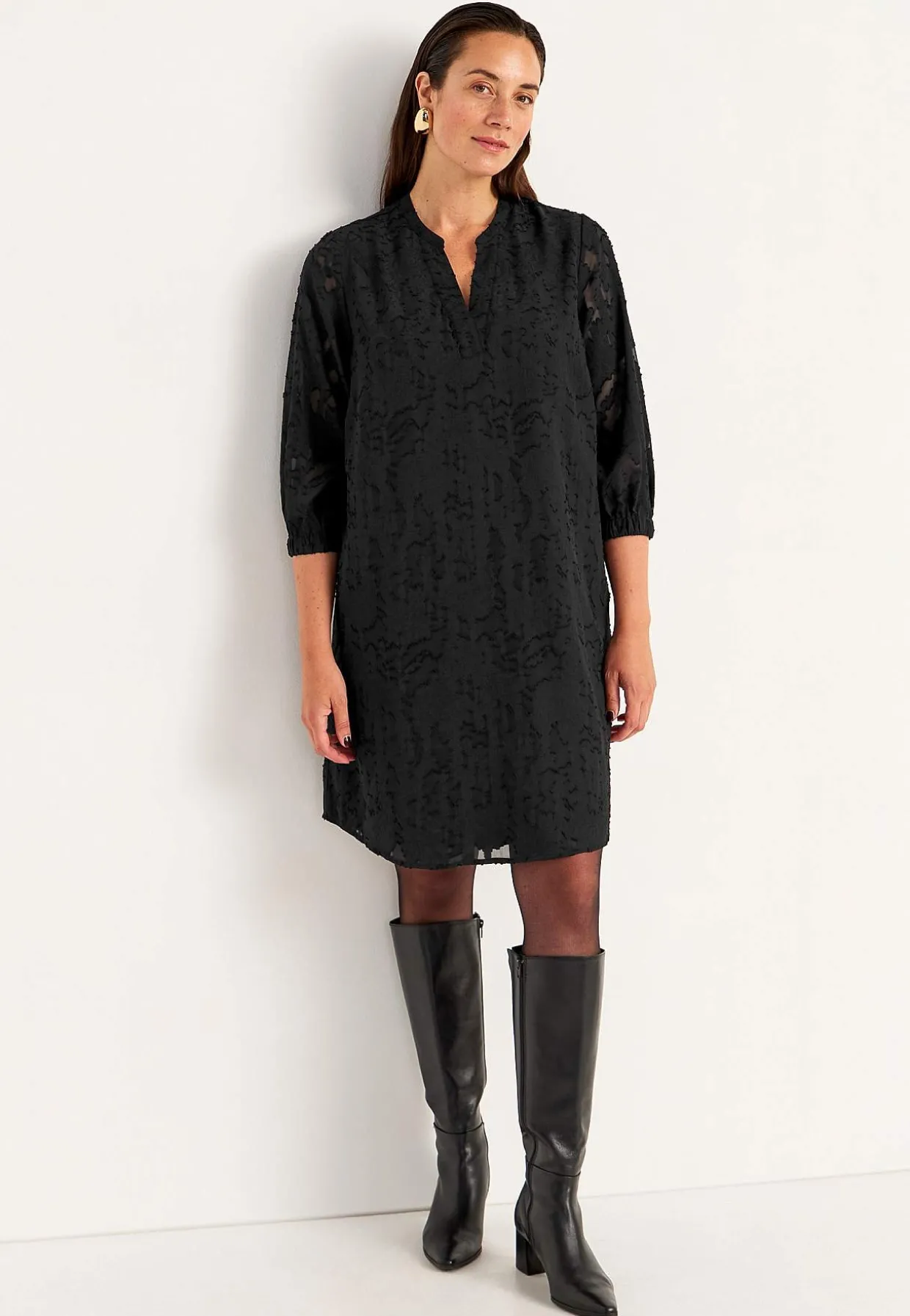 • 3/4 lange, brede, uforede ærmer med elastik ved manchetterne.