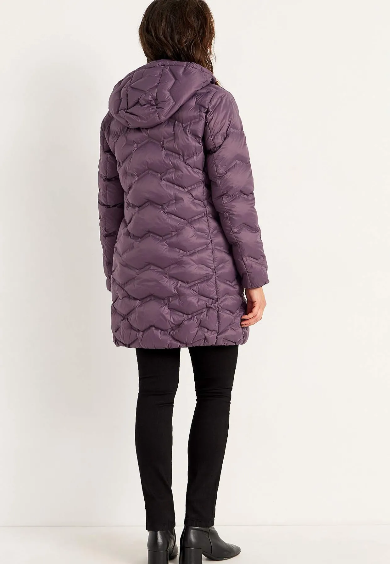 • Aftagelig, foret hætte med træksnøre og stopper.