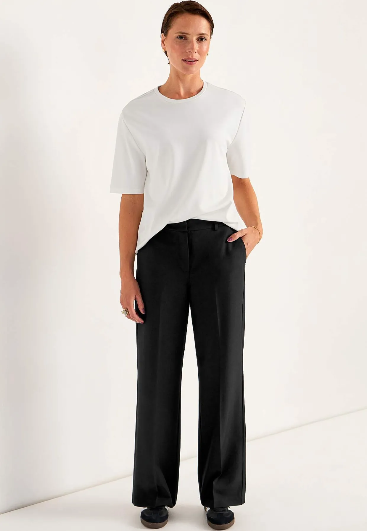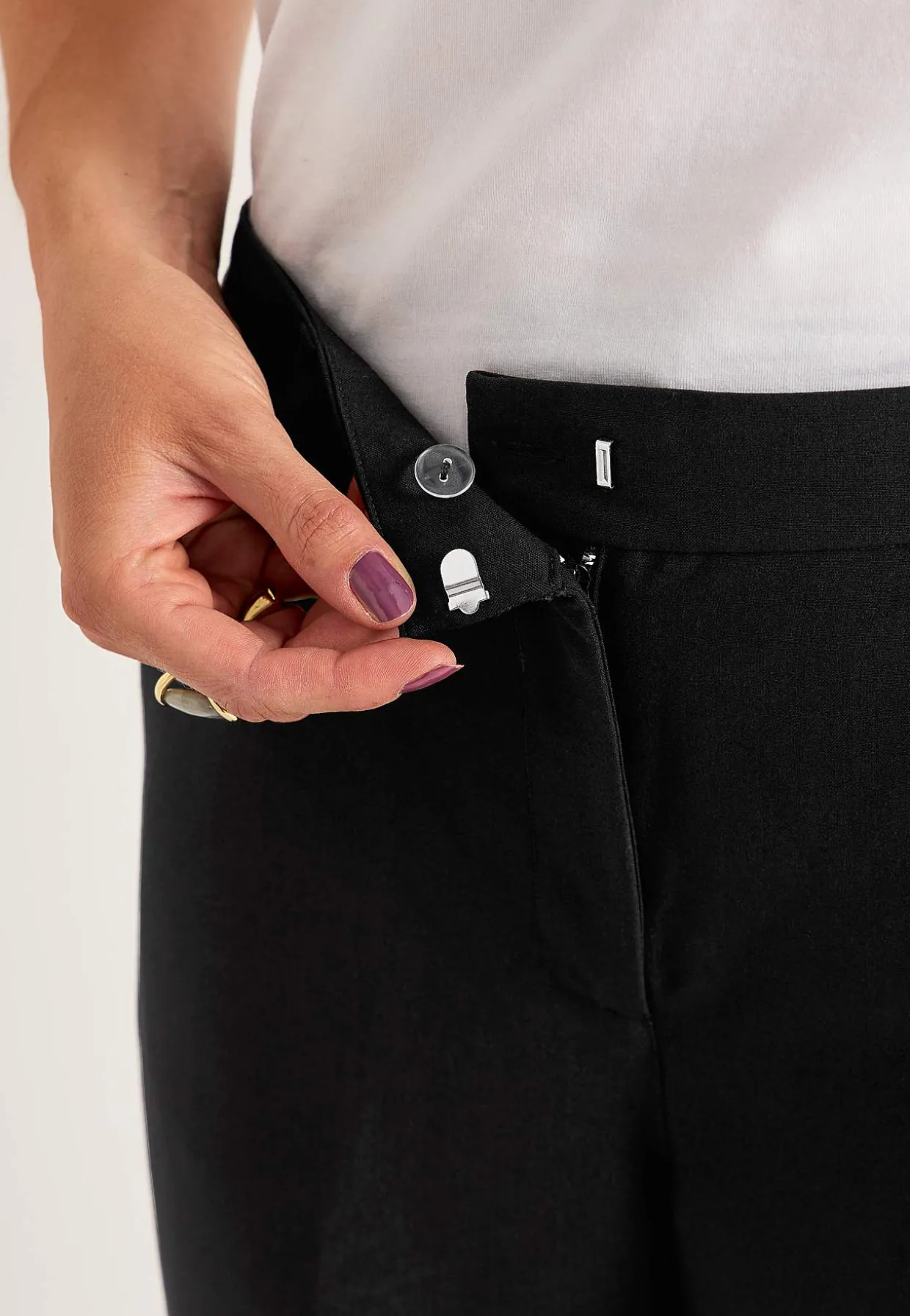 • Normal talje med bæltestropper og bred elastik bagpå.