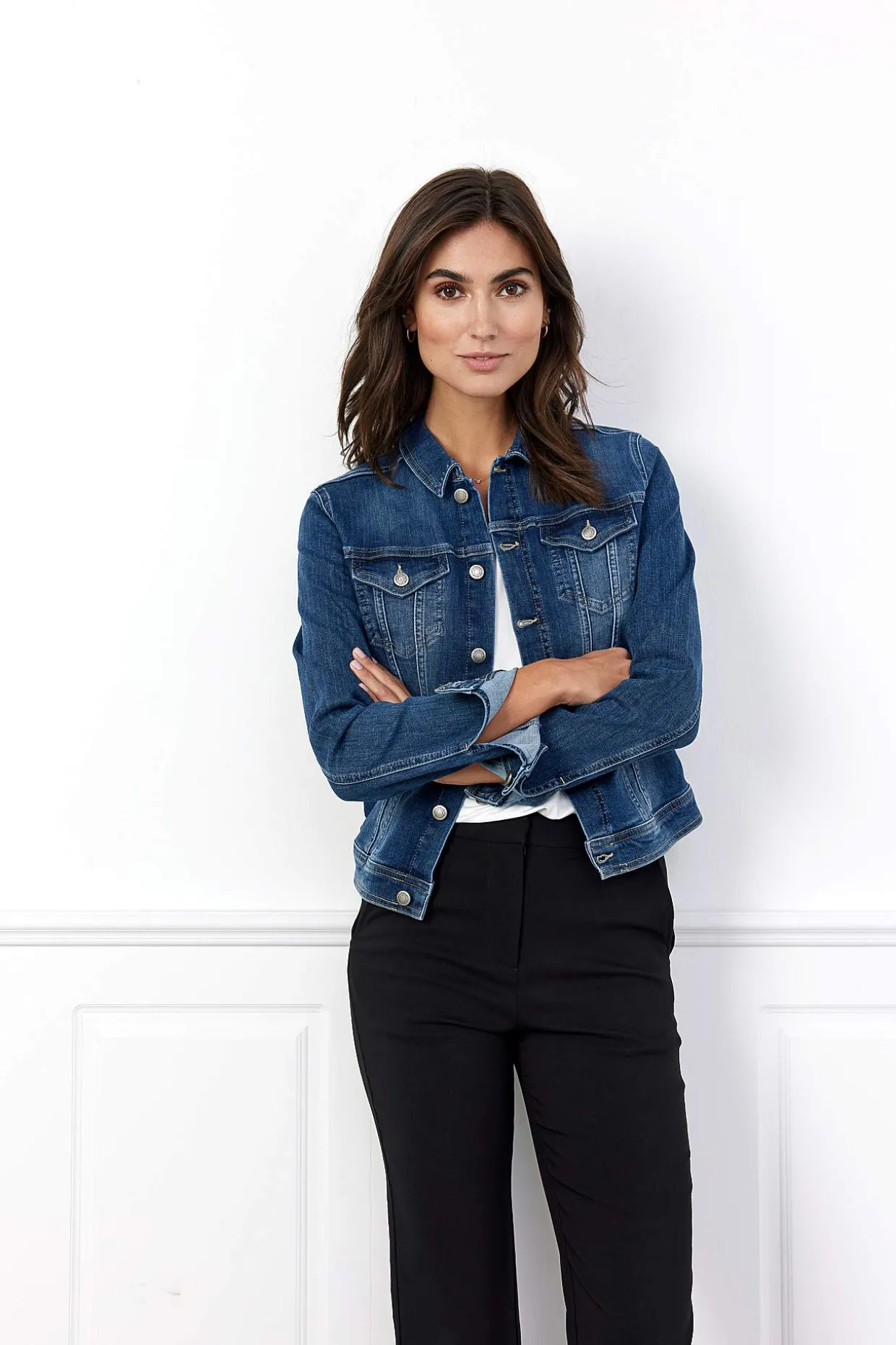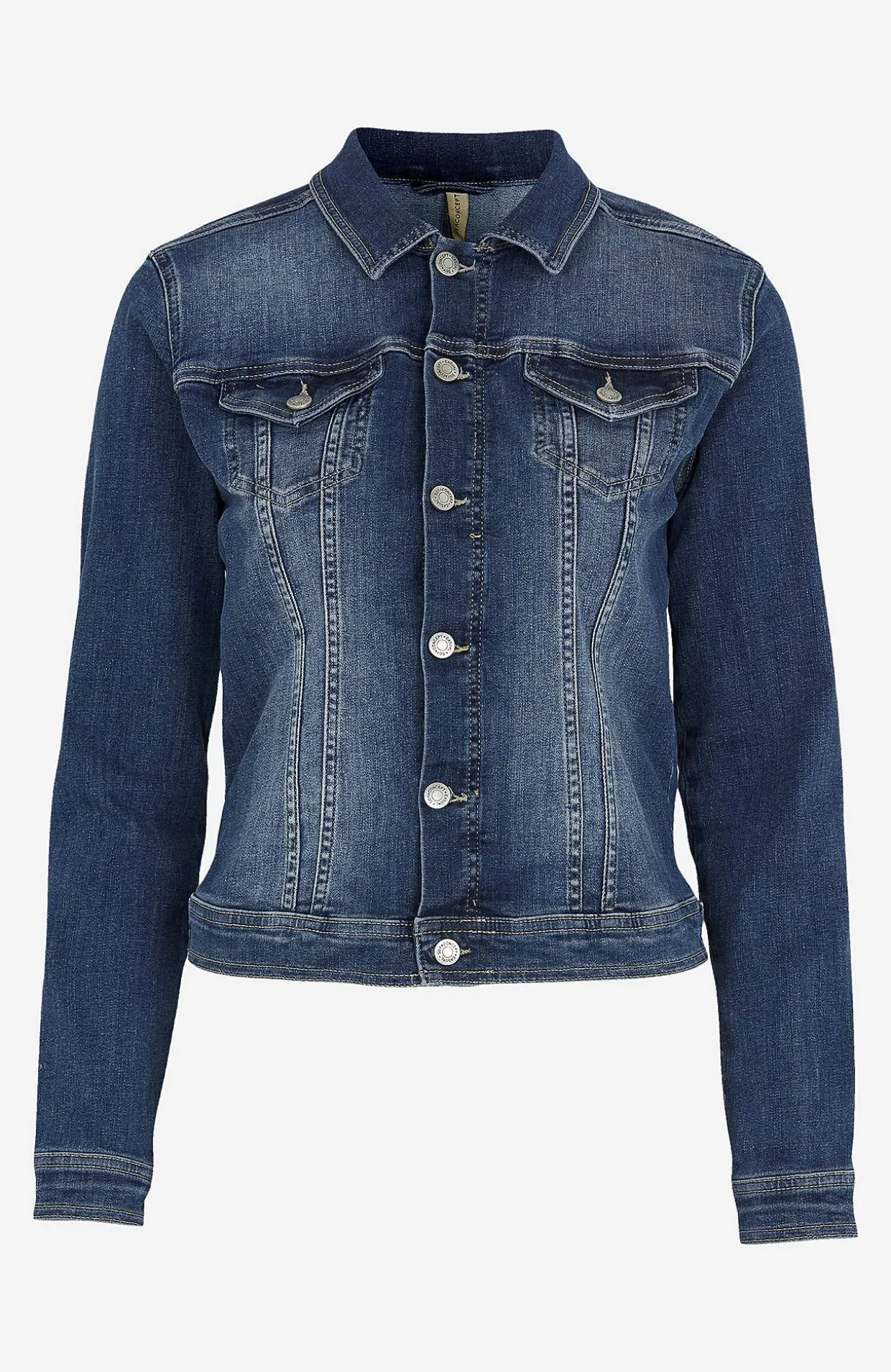 • Jeansjakke i fin denim med stræk med en figursygning.