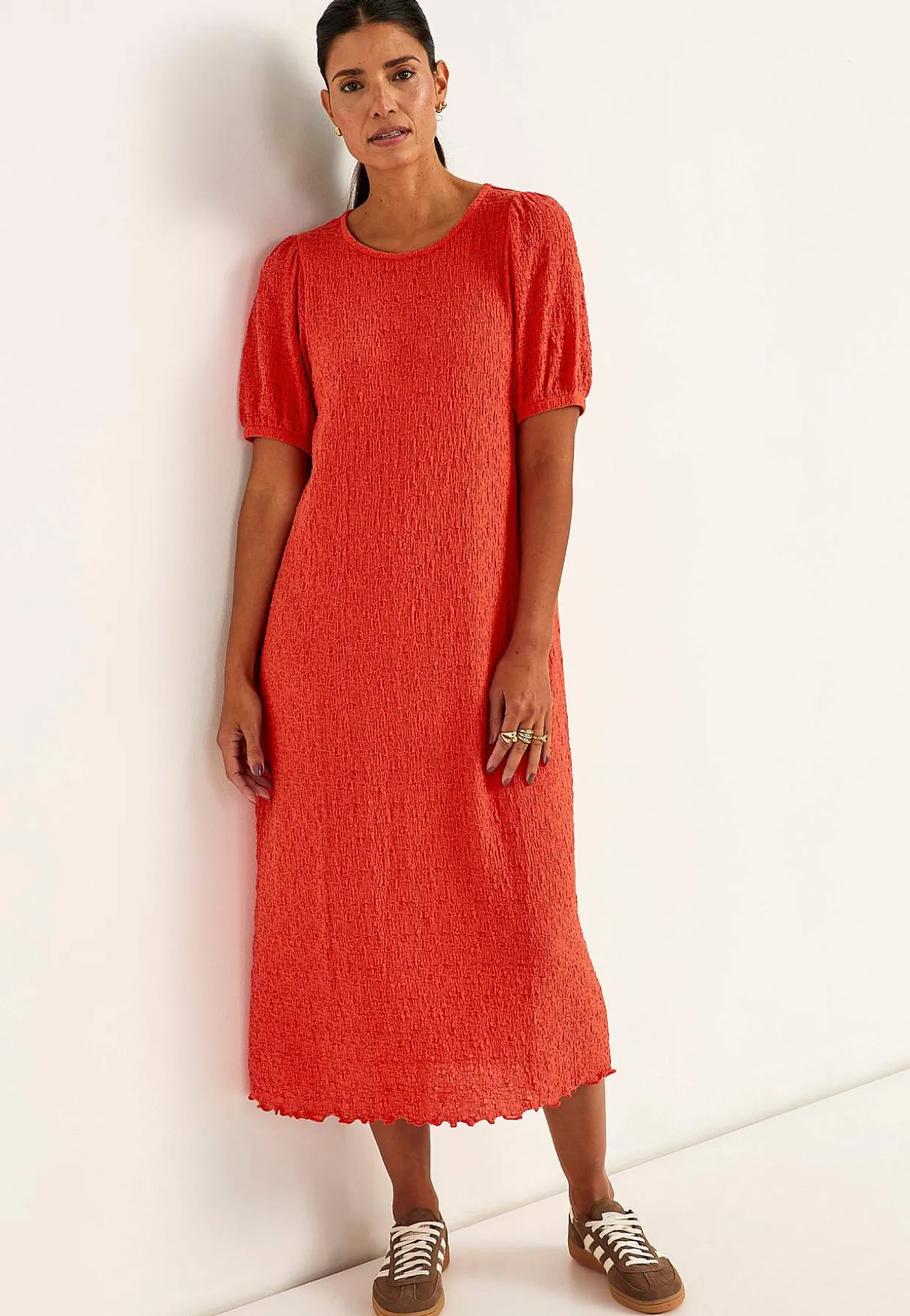 • Korte pufærmer med elastik ved manchetterne.