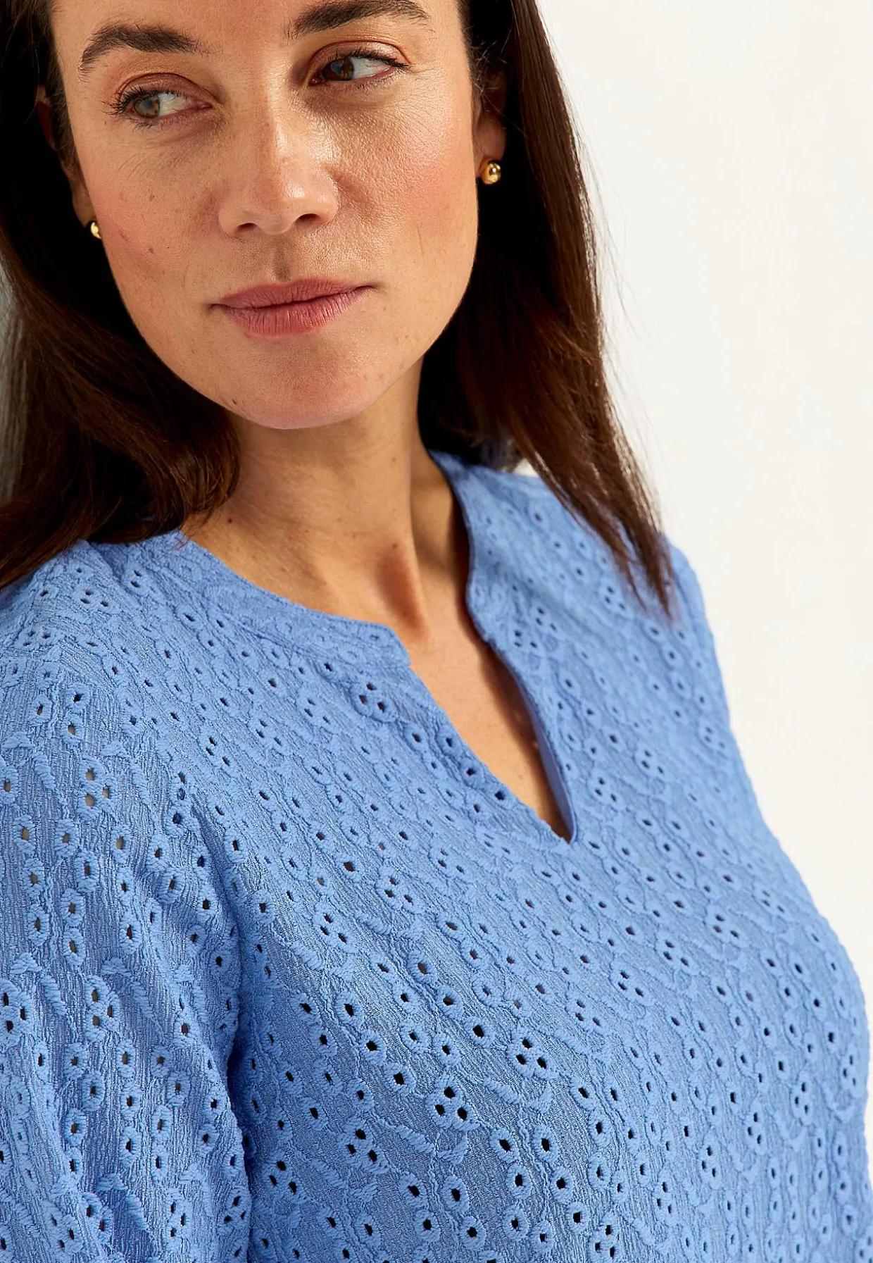 • Rund halsudskæring med v-udskæring foran.