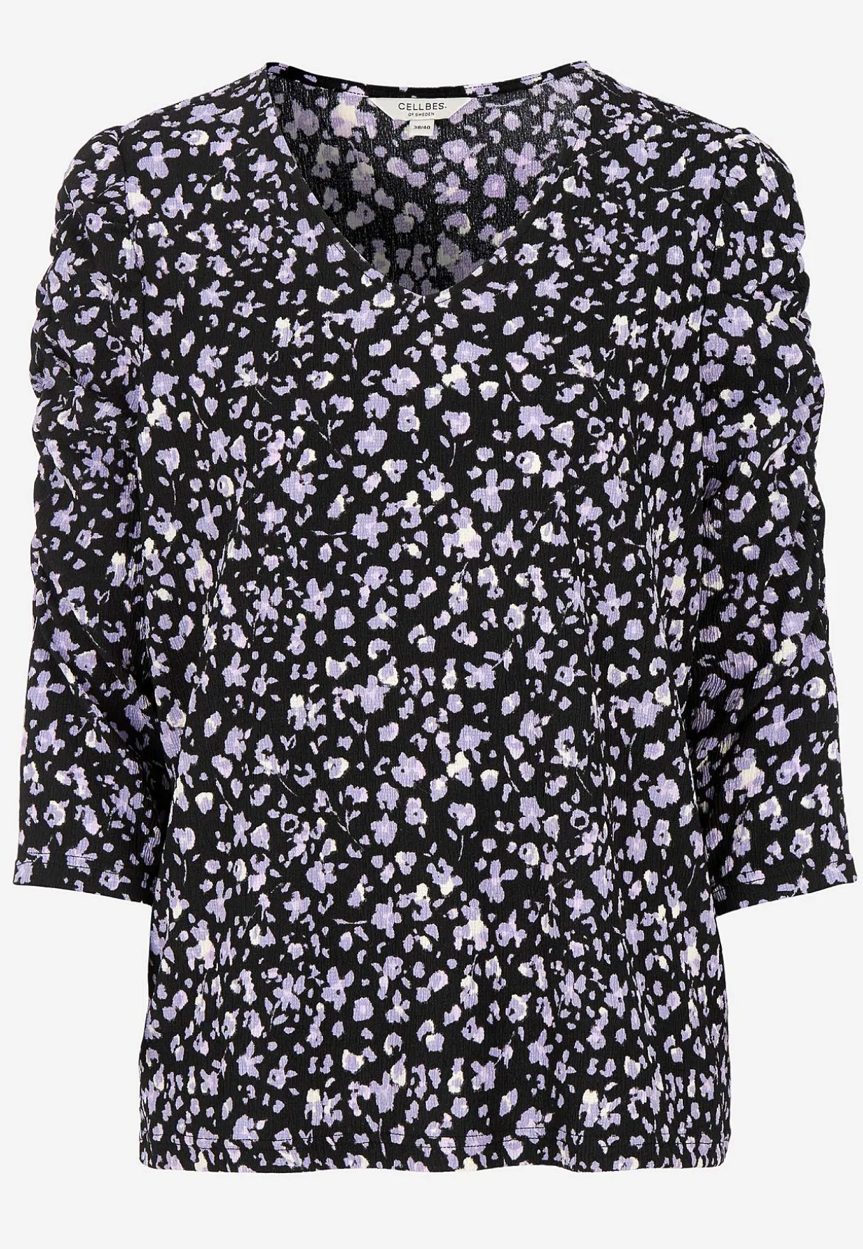 • 3/4 lange ærmer med dekorativ elastiksøm på toppen.