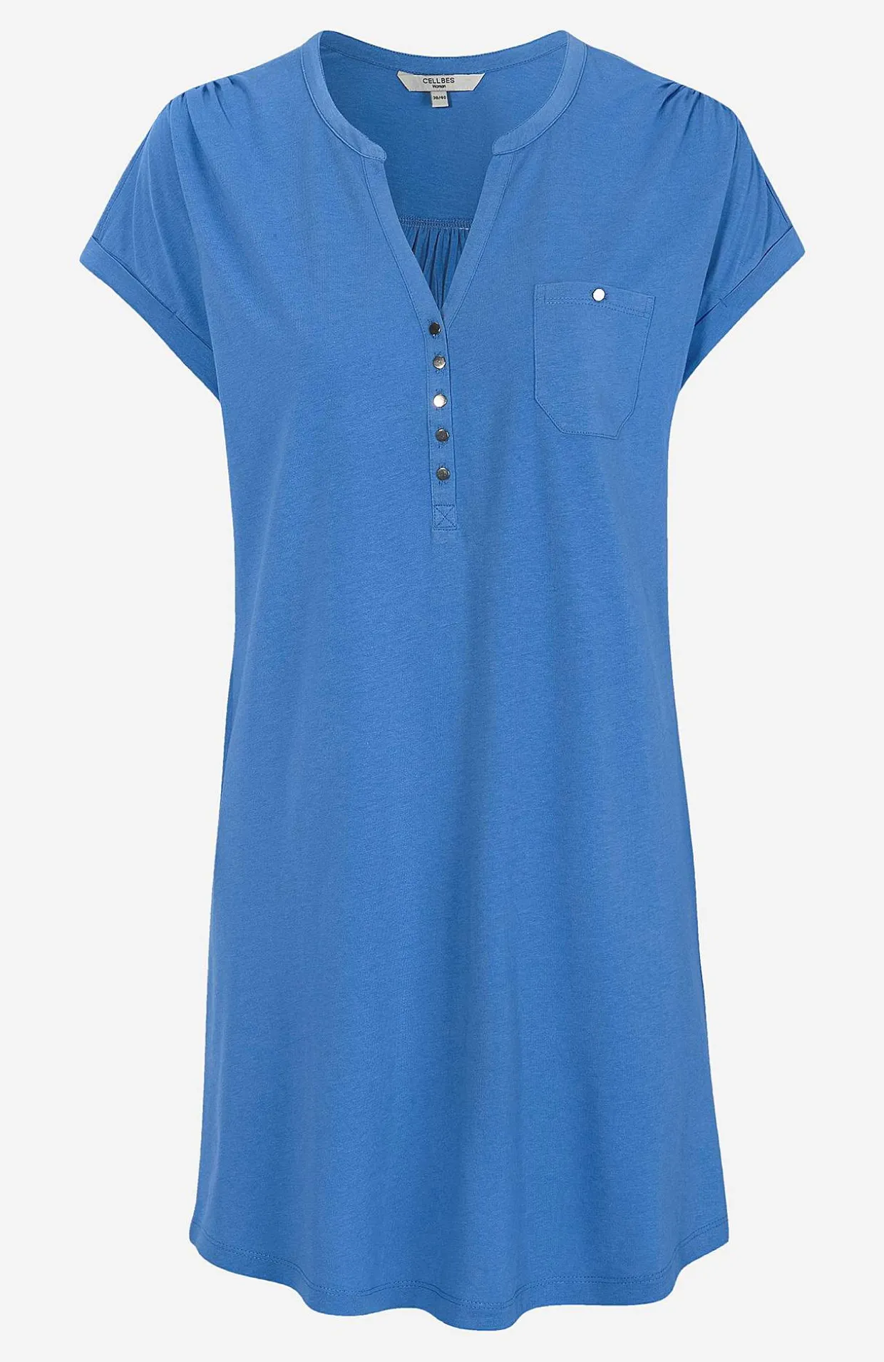 • Rund halsudskæring med v-udskæring og knapstolpe foran med sølvfarvede metalknapper.