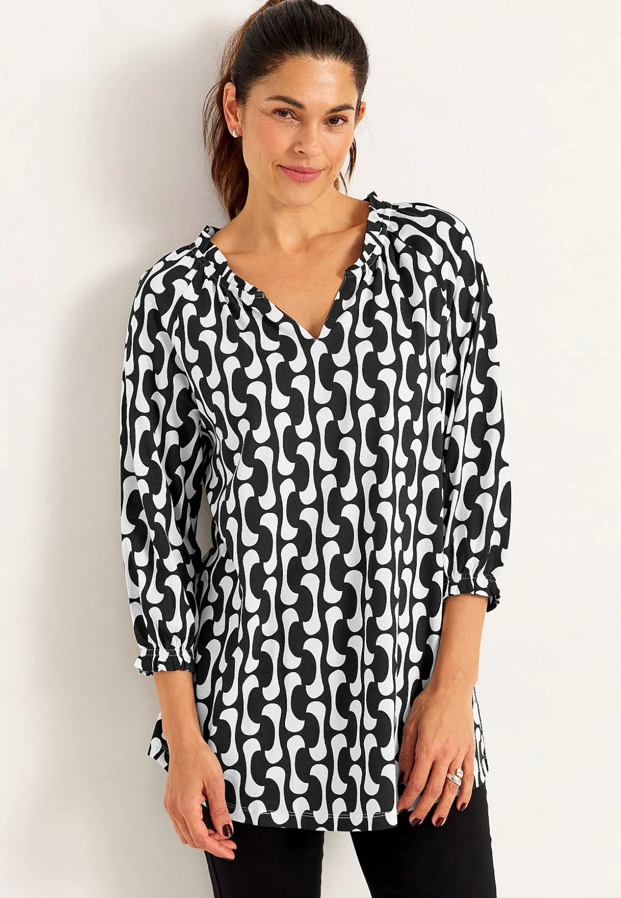 • 3/4 lange raglanærmer med flæsekant ved manchetterne.