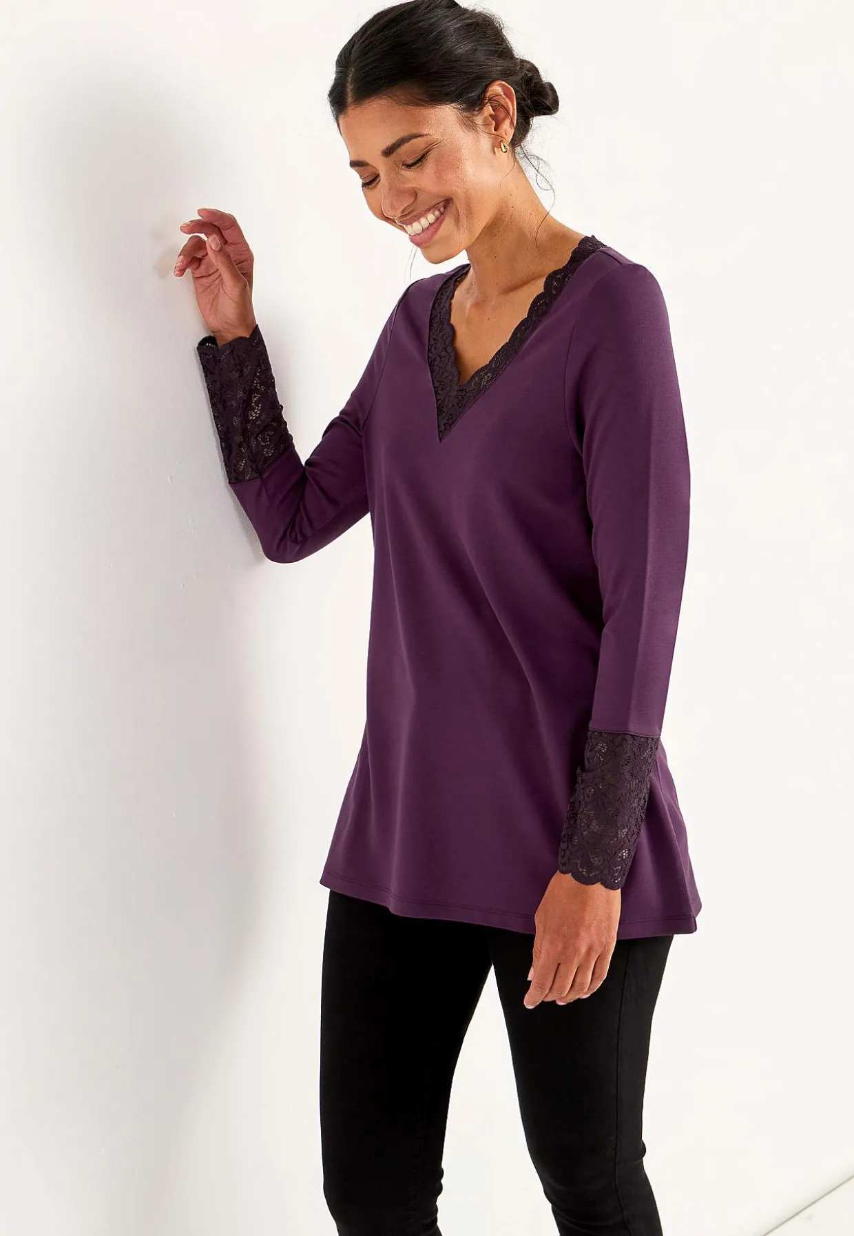 • Halsudskæring med v-udskæring og blonde.