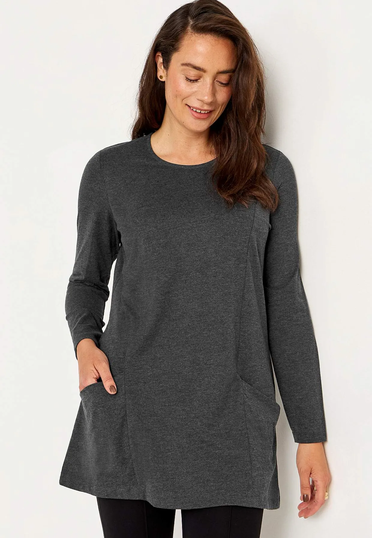 • Komfortabel tunika i blød, meleret bomuldsblanding.