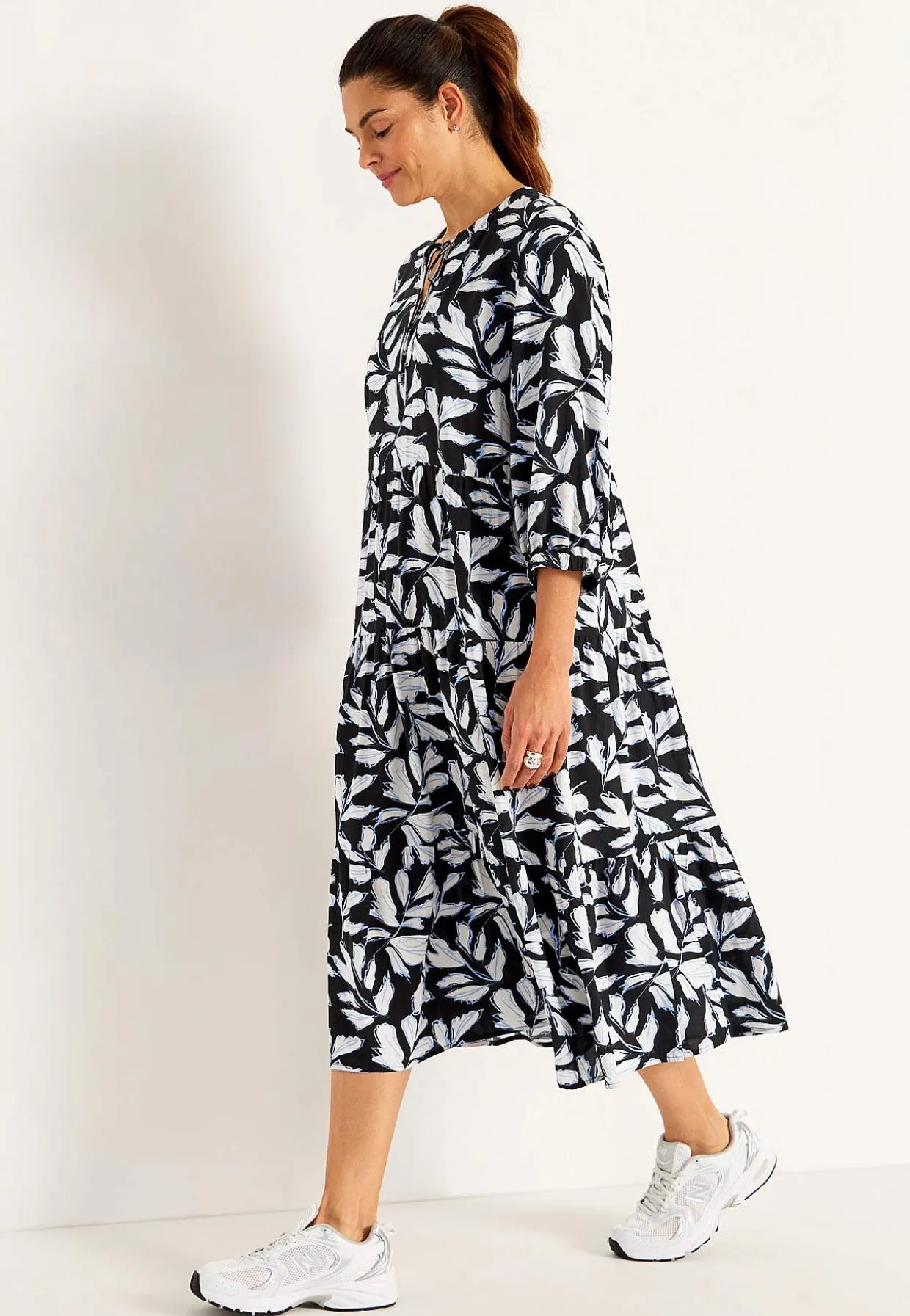 • Brede 3/4 ærmer med elastik ved manchetterne.
