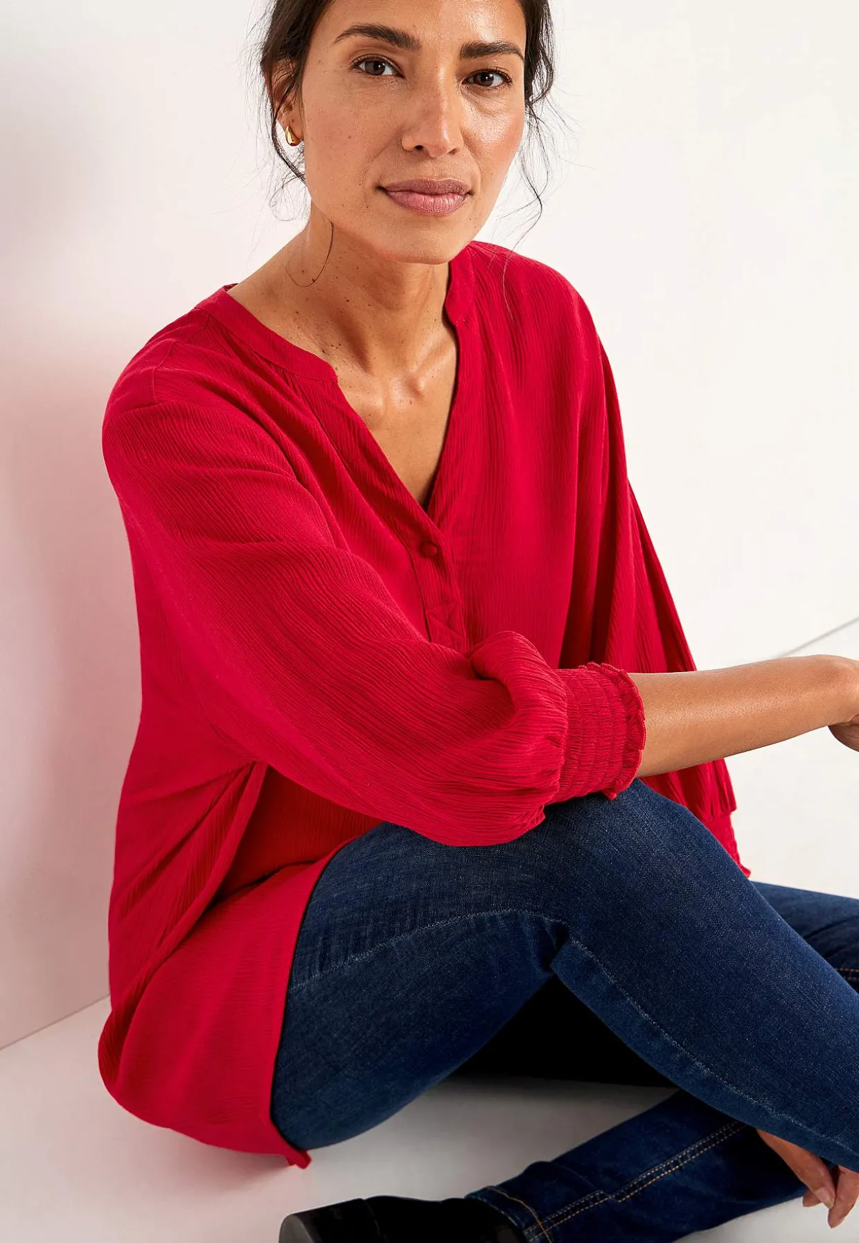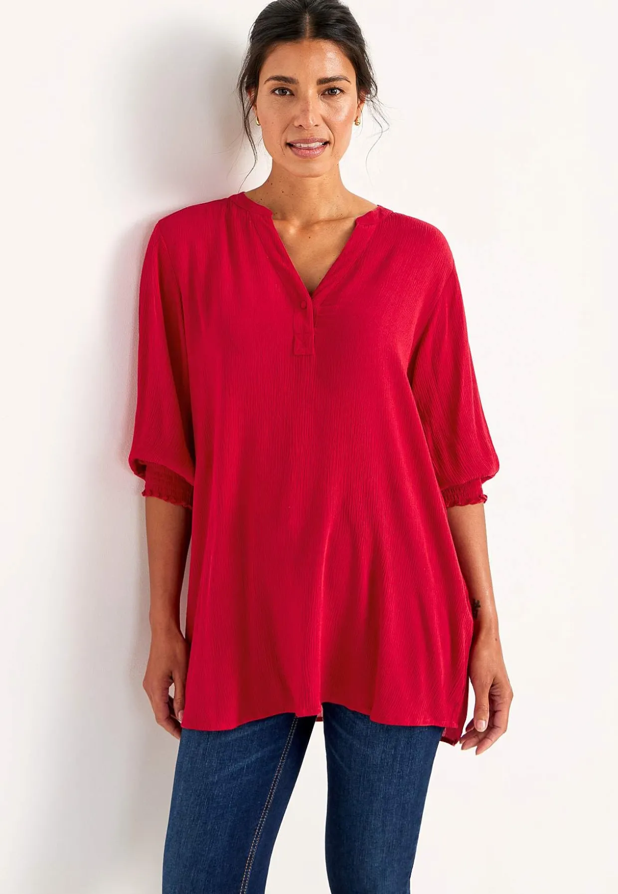 • 3/4 lange ærmer med smock på ærmeafslutningerne.