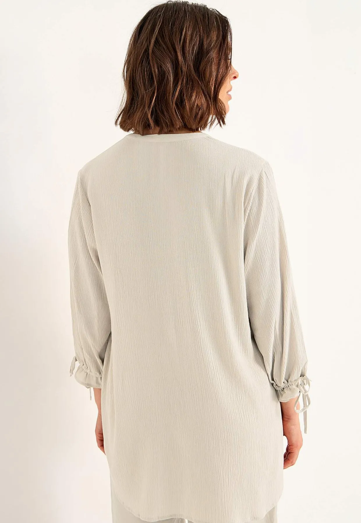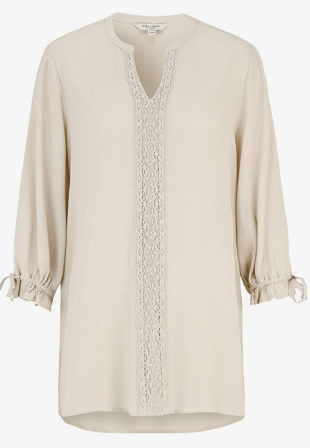 • Brede 3/4 ærmer med bindebånd og volant.